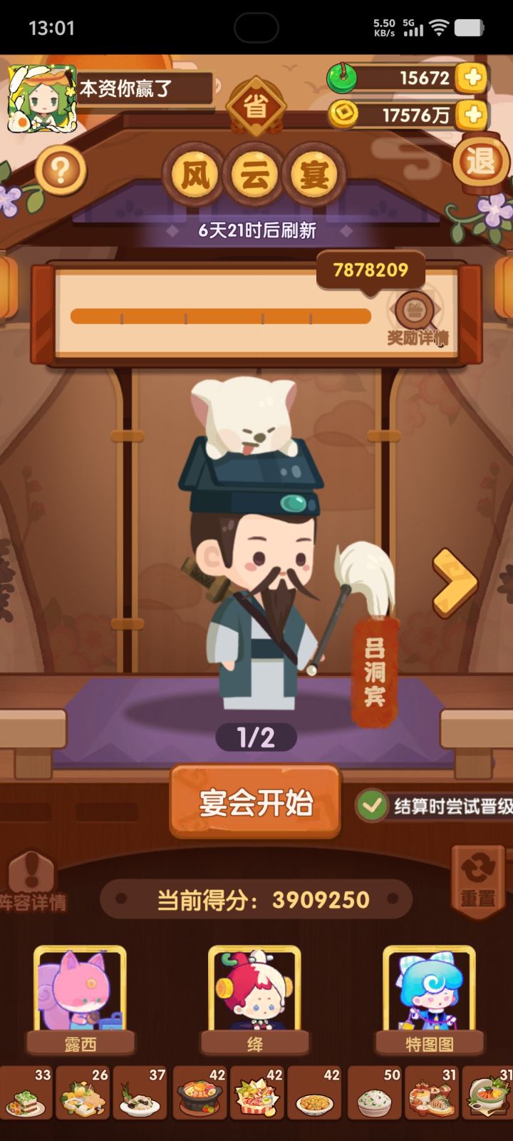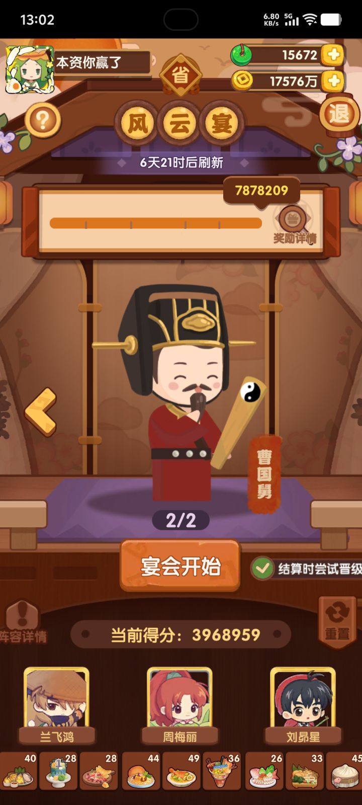 依旧用的之前氪的5个宴会厨,看来我的眼光不错,这几个厨师还没有被淘汰