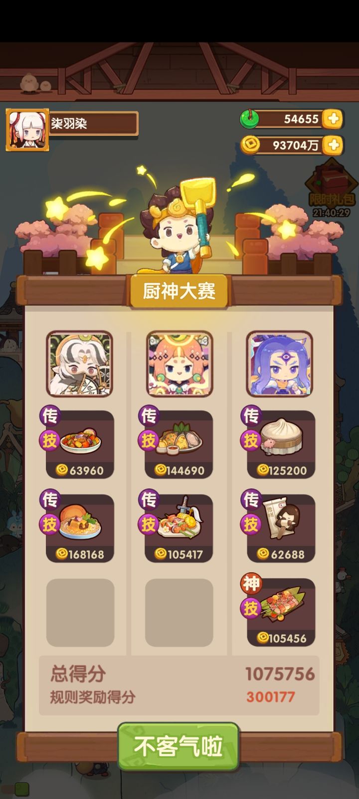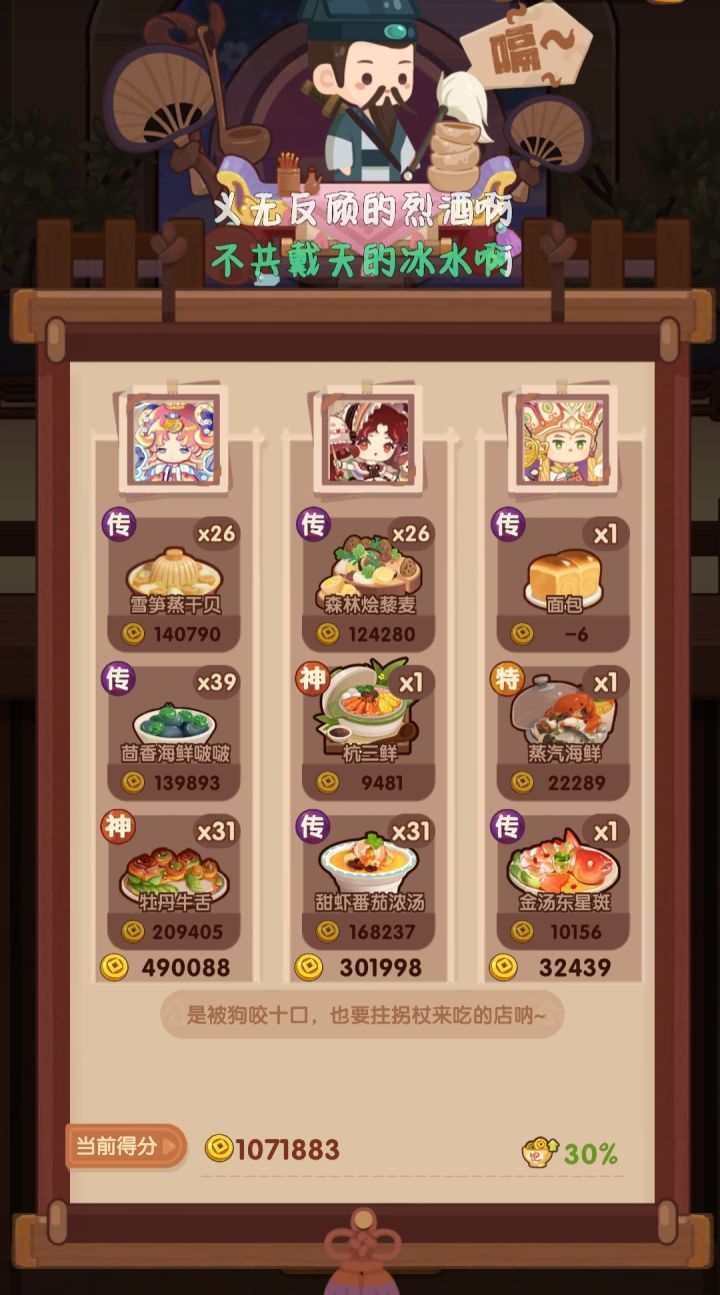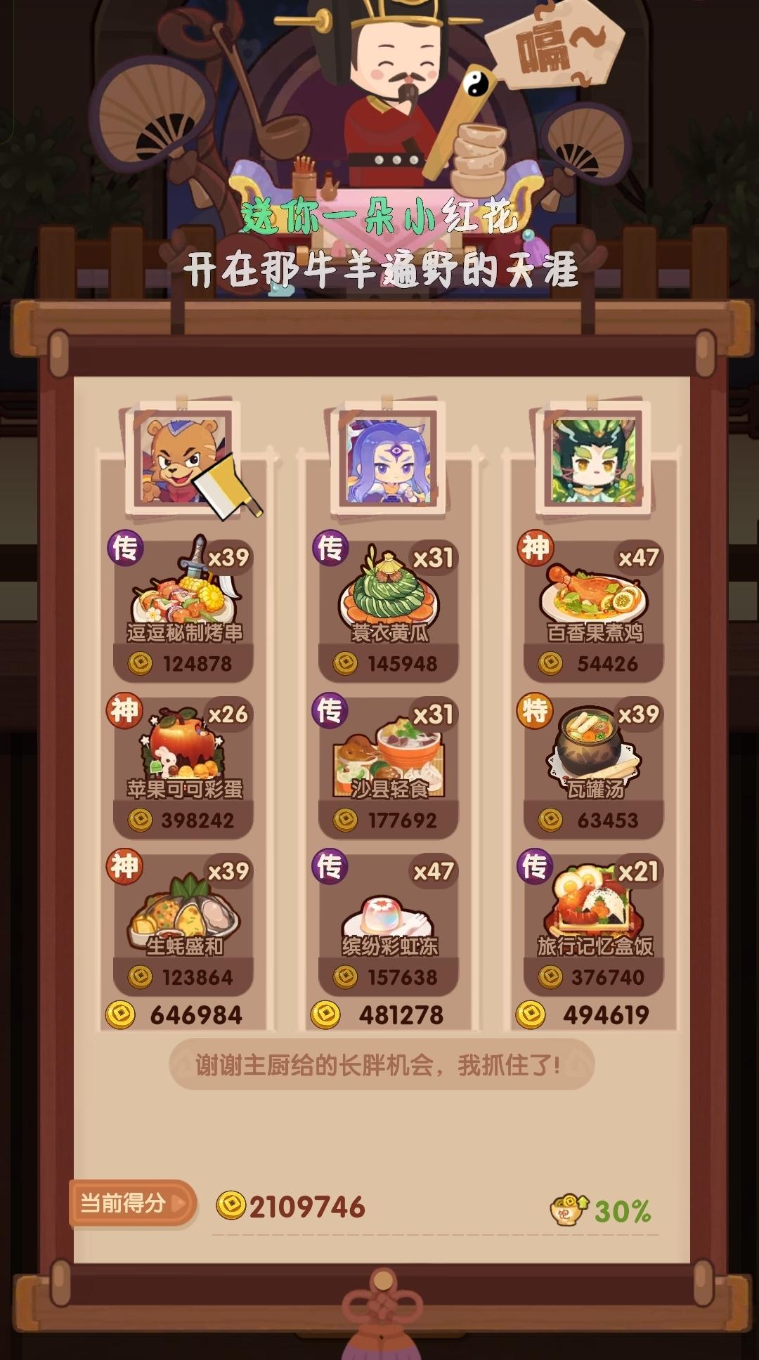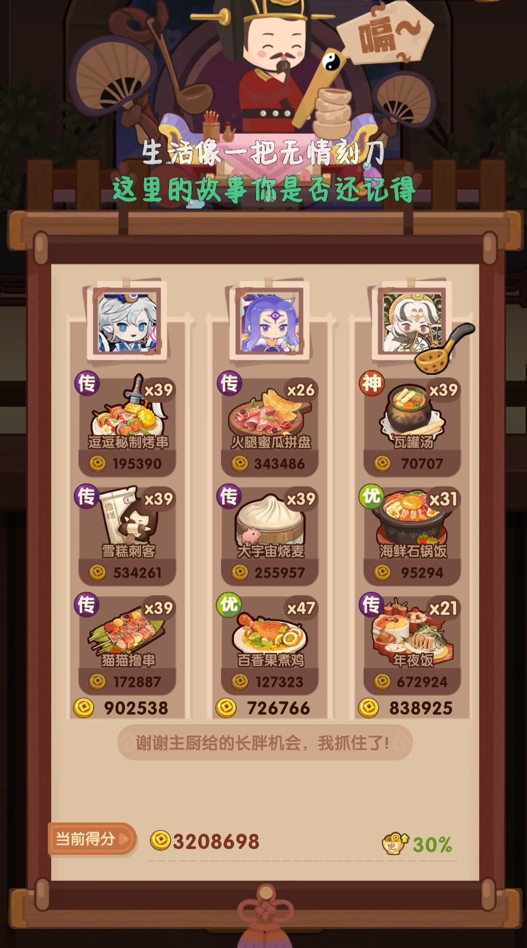 依旧用的之前氪的5个宴会厨,看来我的眼光不错,这几个厨师还没有被淘汰