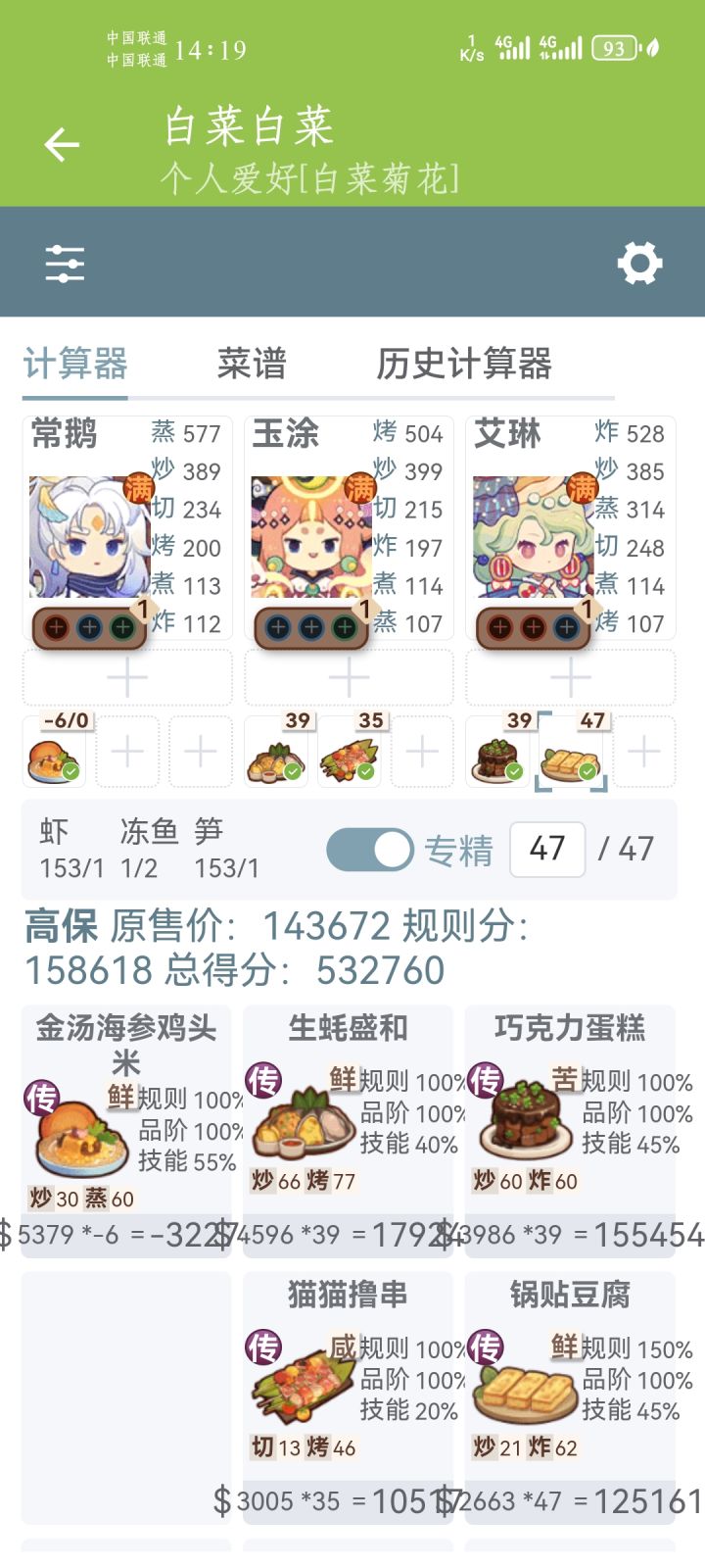 🧱前排提醒 ——满档分数线2980000 本期提供高分单通方案P1-2,省关键食材方案P3-4,吕洞宾这里需要高基修,曹国舅更适合单通。🌼厨具推荐【孔布明】推荐加【炒】技法厨具做【传】海参鸡米头,【瑟雷萨】推荐煮炸技法厨具做传【酥炸蚝配鱼子酱】,【唐三三】推荐蒸技法厨具做特【蒸汽海鲜】,【普洛妮】推荐煮技法厨具做传年夜饭,同时注意前两道不能【传】。🌵P1-2菜谱优化 宝山飞龙锅 下位🔥糟