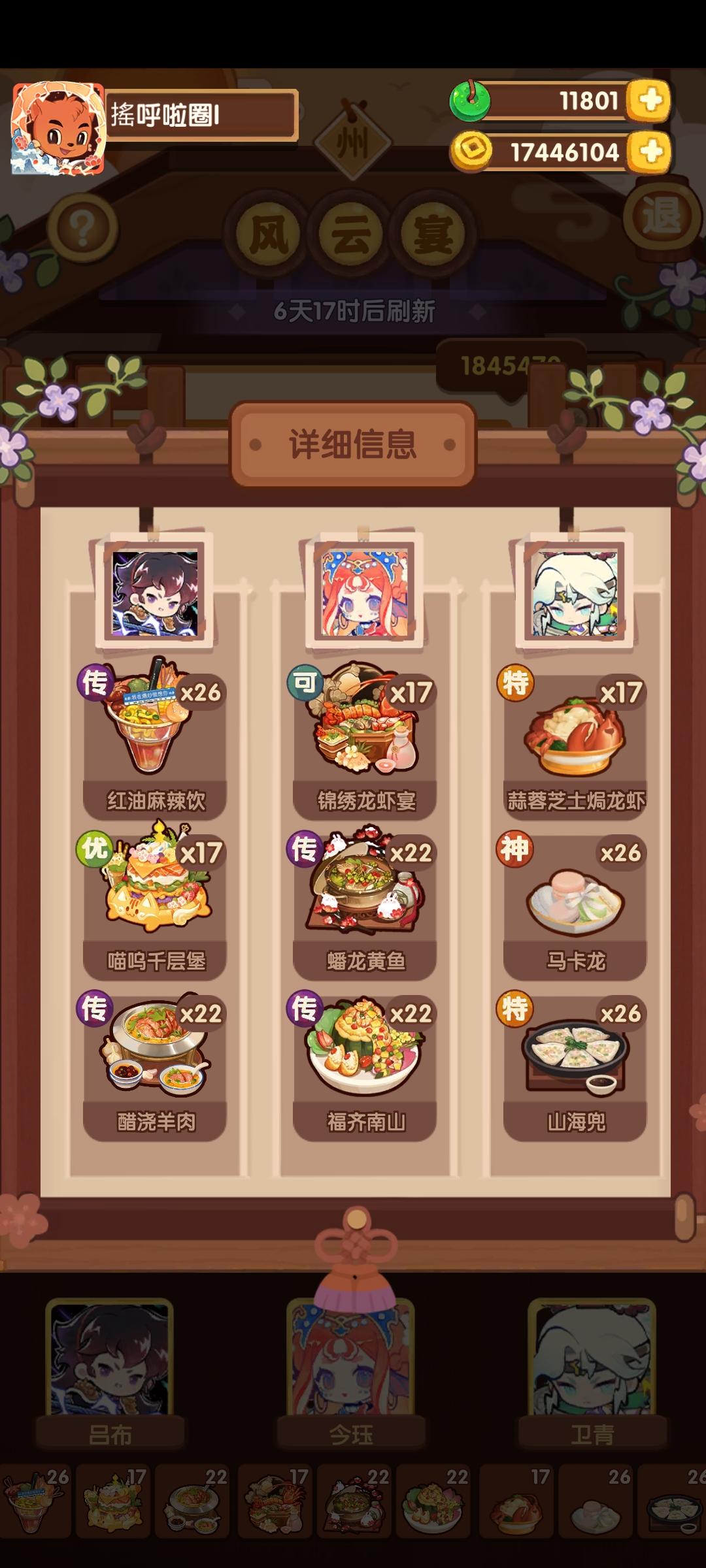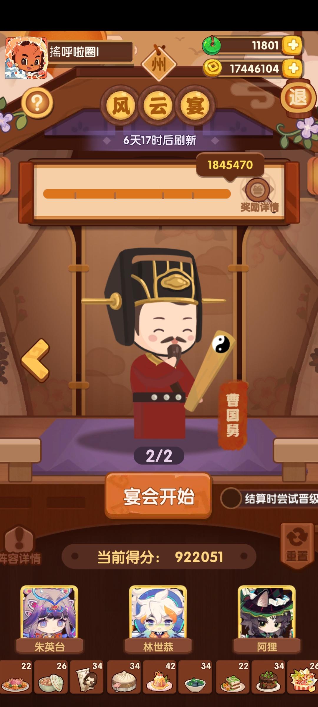 342.2w省满(省5线325.2w),缤果池菜厨表现亮眼!宴会思路记录,同时抛砖引玉能对相似进度小伙伴有启发最好!一个月前(20251212)有过一期【卷帘+御弟】,没想到这么快又重新轮到。当时只能州满,想省满代价很大,需要拉满所有上场厨子的心法盘并上满【席丰】。但此次作业加入缤果池的菜厨后,可以低成本轻松打满省满啦!宴会对技法的需求排序为【切】>【煮】>【烤】>【蒸】>【炒】>【炸】,对调