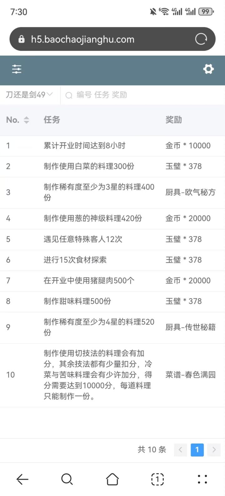 L佬辍更,众玩家失宴会算分之途,余不揣浅陋,愿承其任,续修此网,以飨同好。新网址:https://foodgamere.github.io/后续也会把轮椅的功能整合进图鉴网,轮椅猝~更新日志:2026.2.61.新增碰瓷一键查询2026.2.51.新增菜谱神级方案查询2.新增符文一键查询2026.1.301.新增厨师修炼查询2026.1.241.新增贵客率计算器(轮椅的自