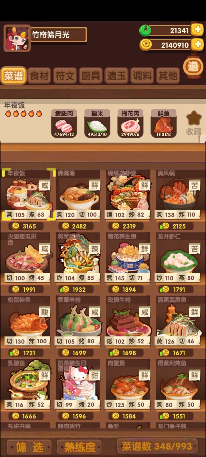 现在348菜谱,164厨子,大家都到什么阶段才能拿满