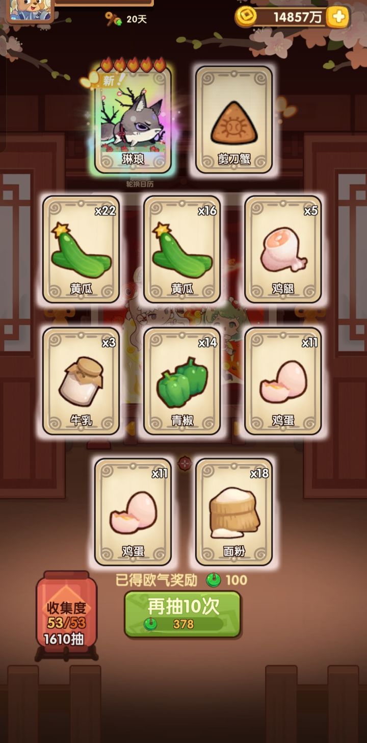 L佬辍更,众玩家失宴会算分之途,余不揣浅陋,愿承其任,续修此网,以飨同好。新网址:https://foodgamere.github.io/后续也会把轮椅的功能整合进图鉴网,轮椅猝~更新日志:2026.2.61.新增碰瓷一键查询2026.2.51.新增菜谱神级方案查询2.新增符文一键查询2026.1.301.新增厨师修炼查询2026.1.241.新增贵客率计算器(轮椅的自
