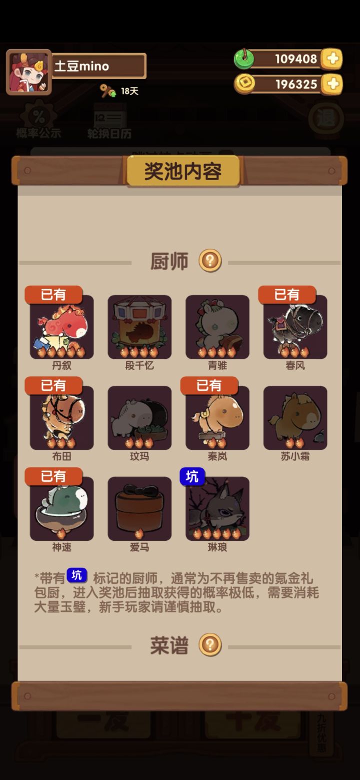 看了厨师技能,段千忆好强啊,炸环我就一个任申,补上了耶,虽然现在对我不太重要了。