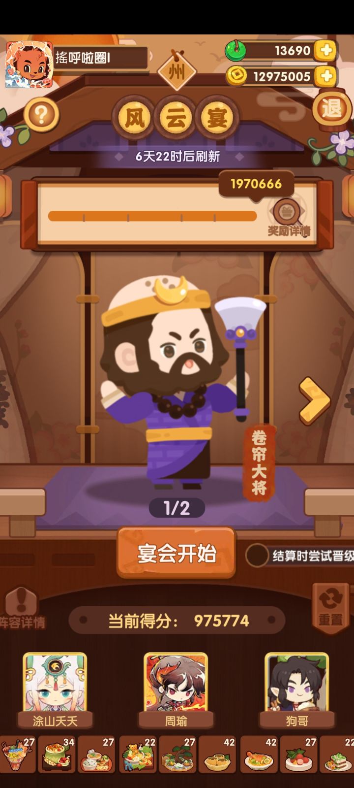 说是五分钟刷新这也没刷新啊,目前感觉上今年过年的奖励要比之前年兽奖励少挺多的目前看下来骰子恢复时间基础是40分钟,最高存储30个,也就是最多20小时你就得上一次线,不然就浪费了。转盘里走到增加厨子的格子可以多一个厨子,厨子+5%时间,至少20个厨子才能20分钟恢复一个骰子。这时候就得玩家10小时上一次线了。怎么说呢,这活动一点都不像过年的活动。20260212,越想越气,什么破活动,纯看脸