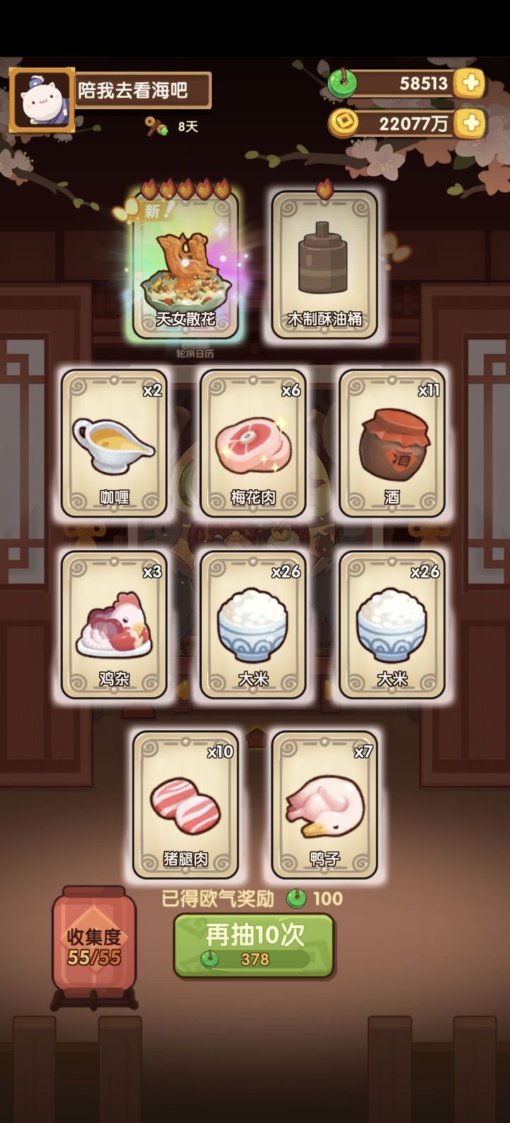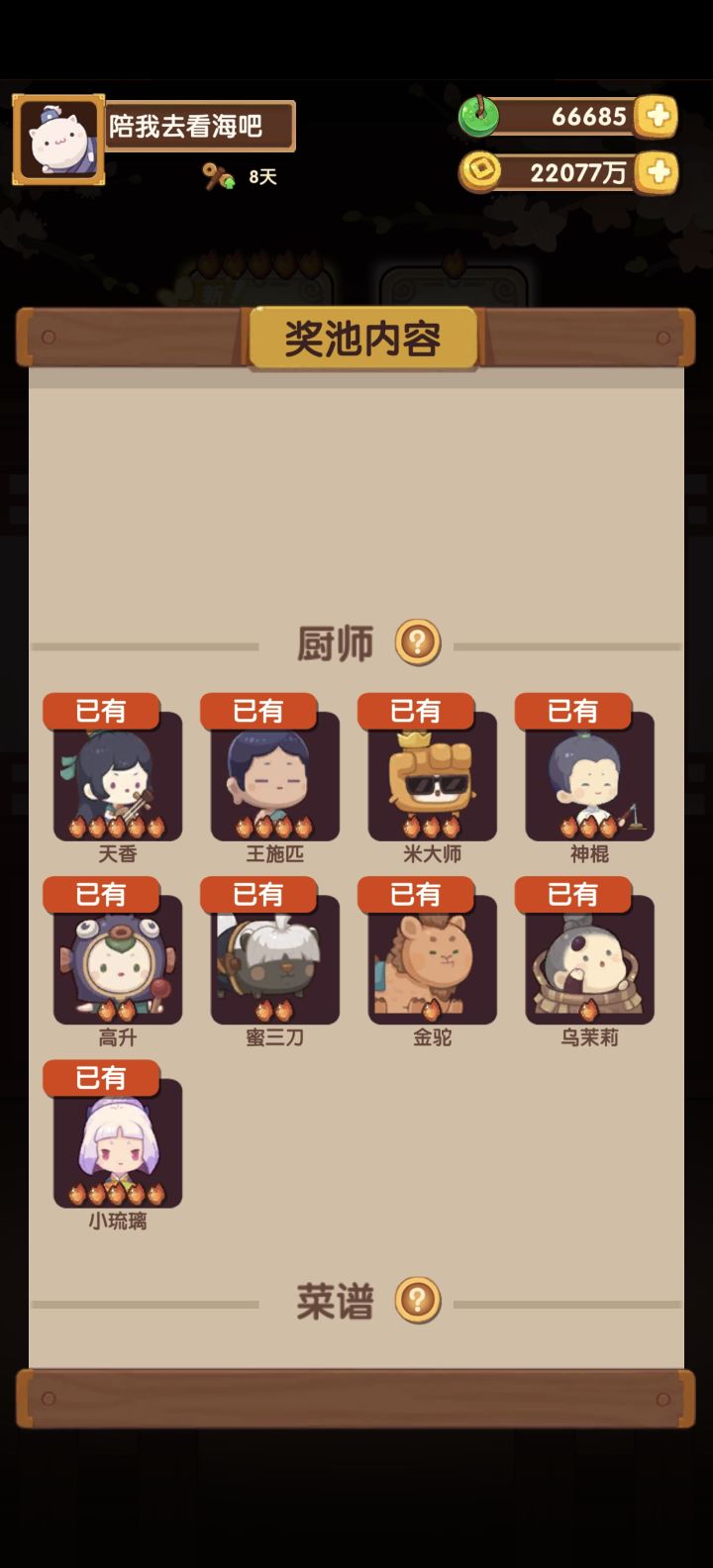 #爆炒江湖萌新 第50天战绩厨神大赛:皇城刚过宴会:州级满分主线:212修炼:1234🔥共修了42个,琳琅真好用池子:缤果池除坑,马年齐,批评豪杰池,两万多,五🔥菜和厨都没出,还跑了,不如酆都池,一发出炎罗,尽管我想要的是菜谱;壁池四个五火菜谱只抽到一个,也是麻了小计划:菜谱菜谱菜谱,五火菜谱快来,耽误我修练了