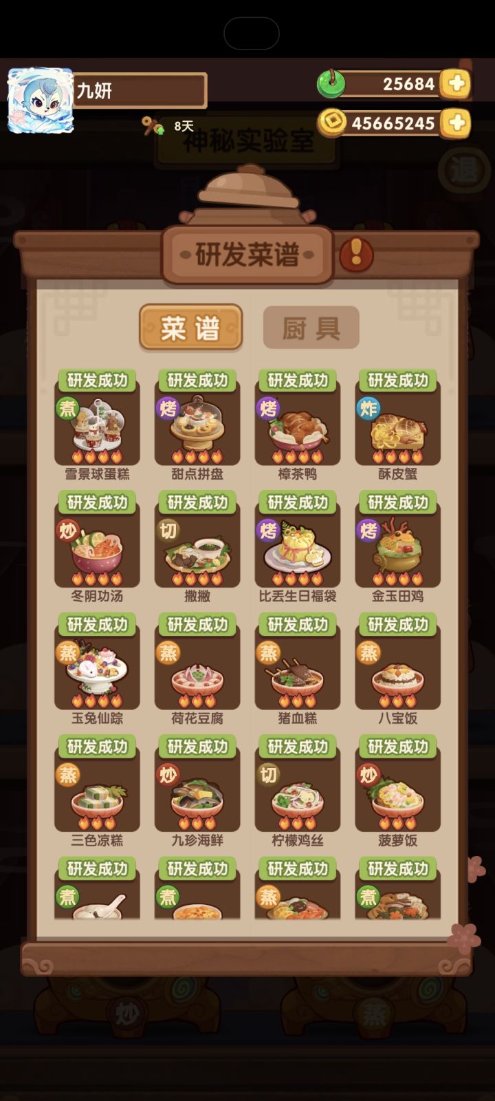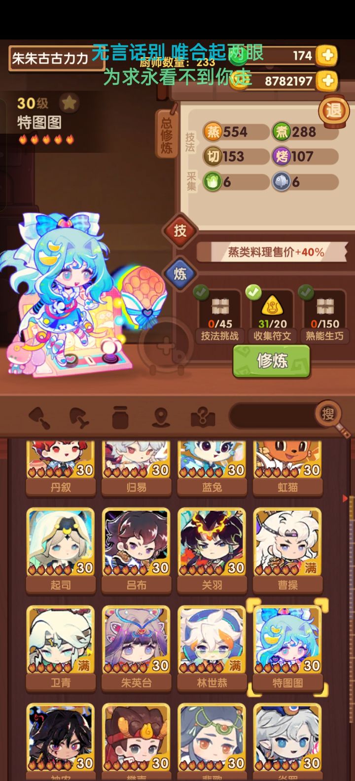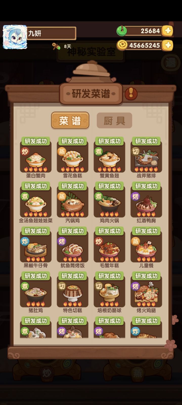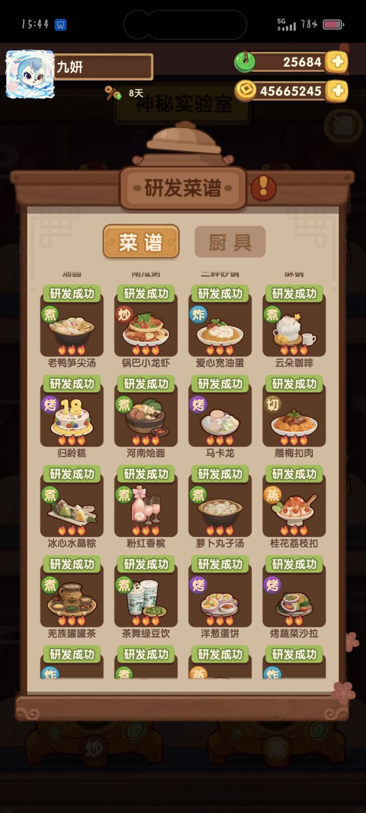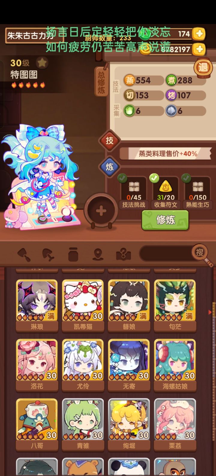 #爆炒江湖萌新 第50天战绩厨神大赛:皇城刚过宴会:州级满分主线:212修炼:1234🔥共修了42个,琳琅真好用池子:缤果池除坑,马年齐,批评豪杰池,两万多,五🔥菜和厨都没出,还跑了,不如酆都池,一发出炎罗,尽管我想要的是菜谱;壁池四个五火菜谱只抽到一个,也是麻了小计划:菜谱菜谱菜谱,五火菜谱快来,耽误我修练了
