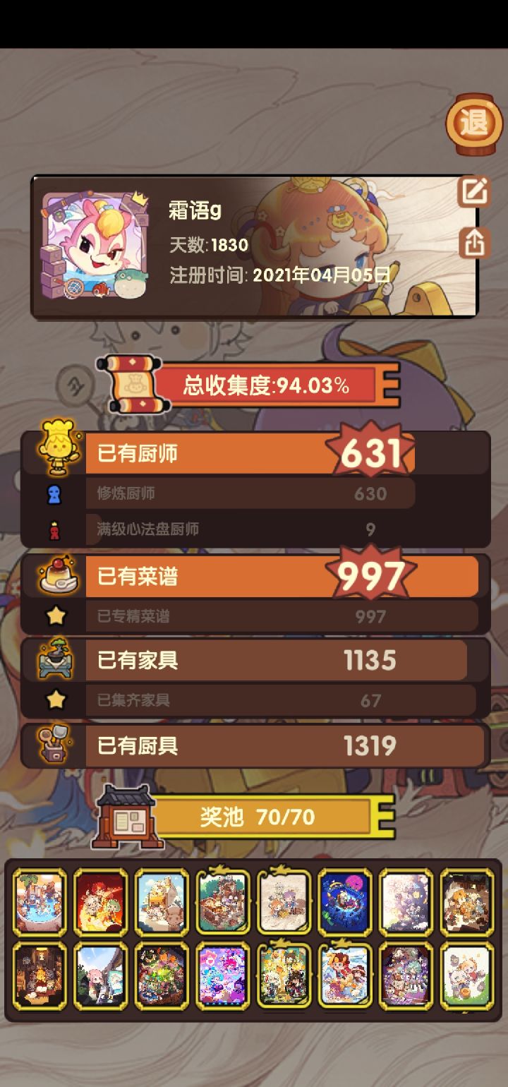 今天终于抽完了端午池,这下终于算是全部补完了(璧池差的那个厨具就随缘吧),特此发帖纪念一下。