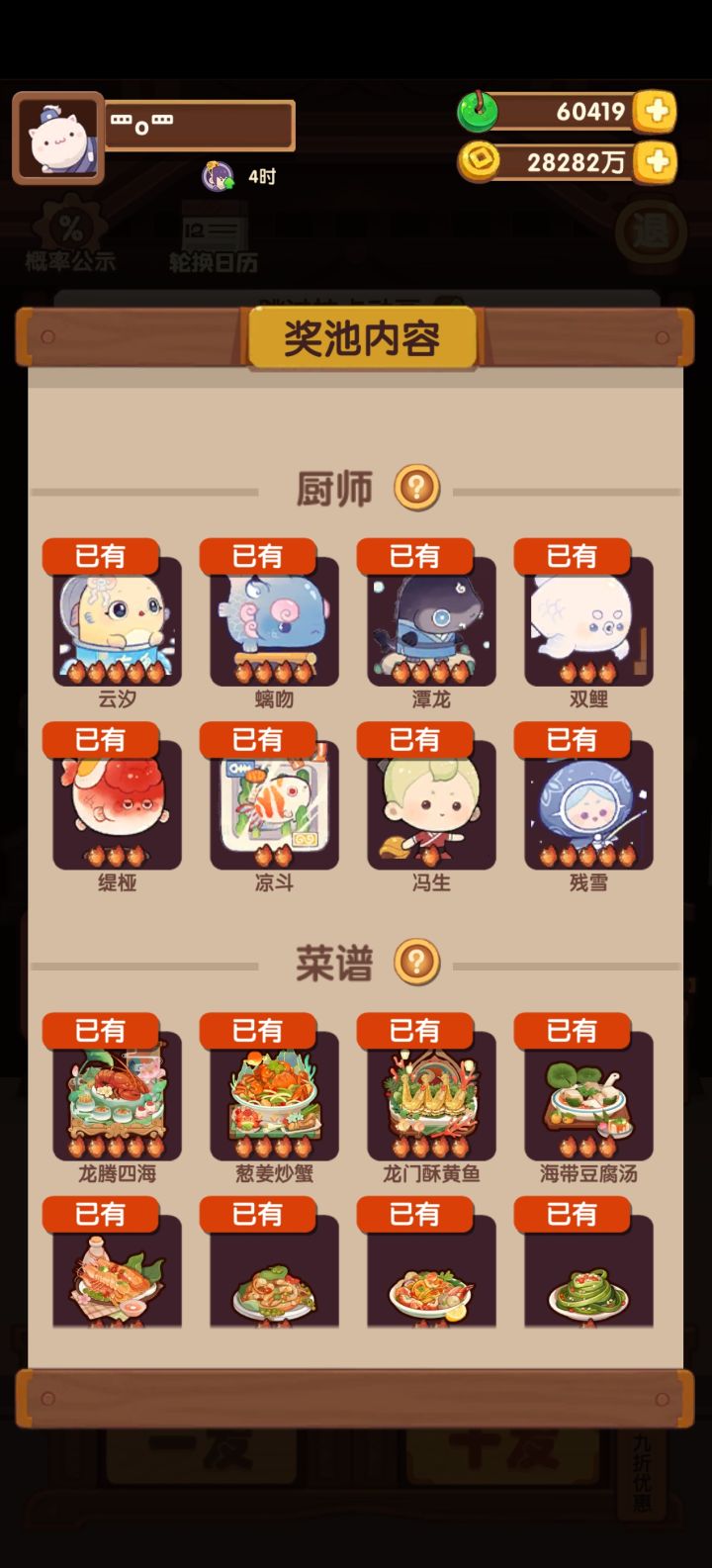 这次活动又是关于海洋的,又有钓鱼的那个小活动了那个在船上来回巡逻的鸭子水手,一脸严肃地拿个捞网,我感觉可好玩了,钓到的鱼币换了好多符文,挺实用的又解锁了很多厨子和菜谱,开心!