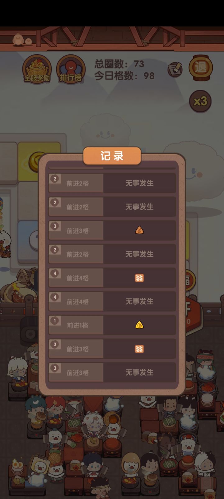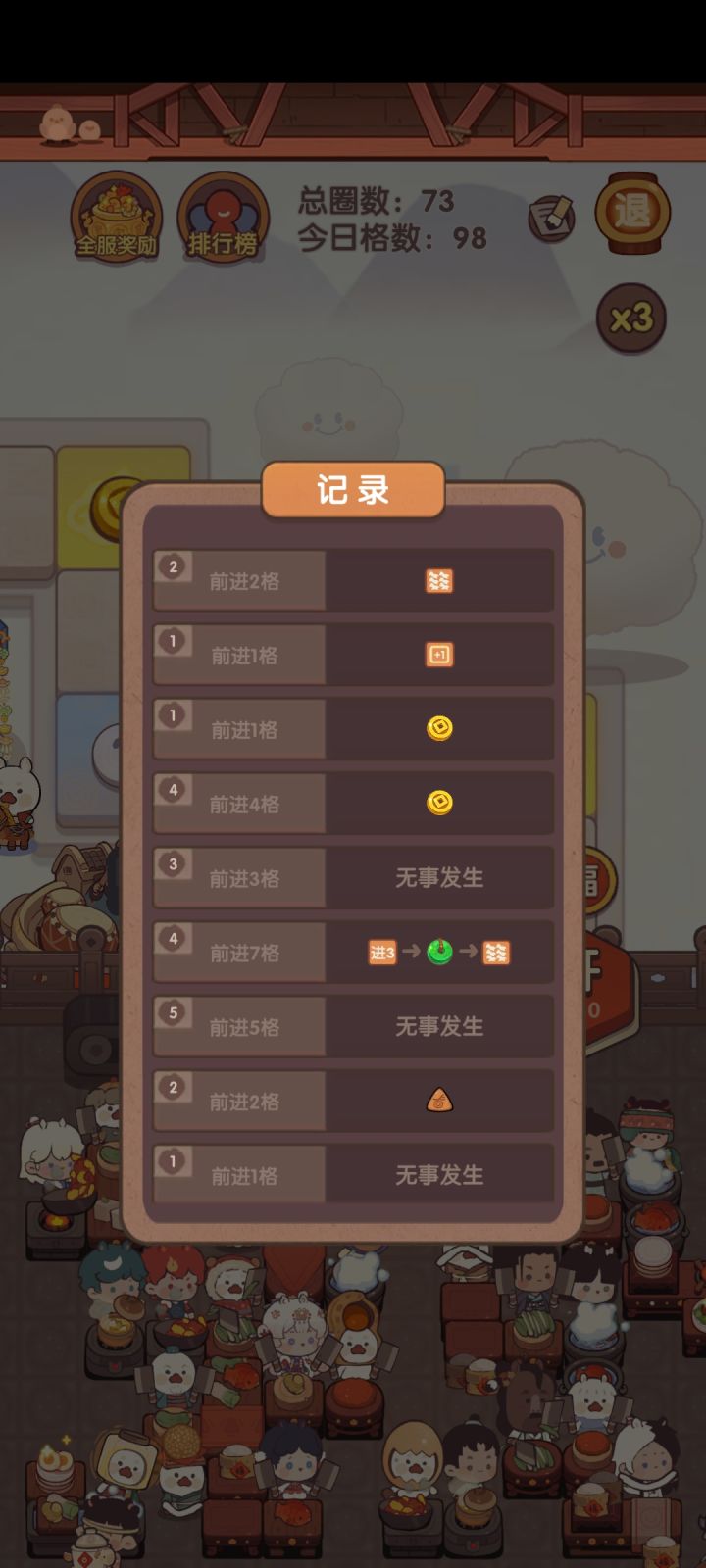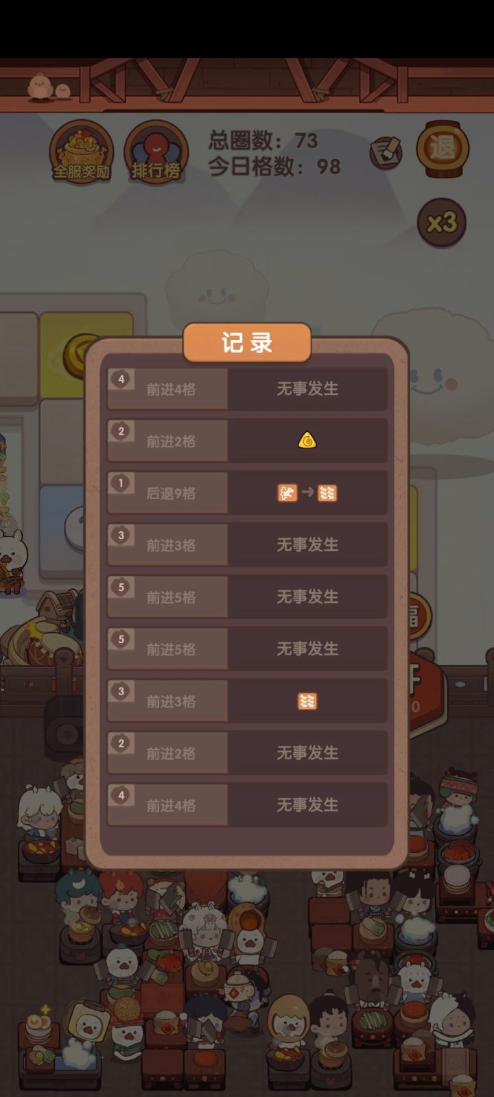 走两圈几乎无事发生各种debuff血压拉满加步数的有啥用啊,多跑一圈也上不了榜啊,本来能中奖的格子,加上步数还跳过了,谁会觉得是好事啊走一圈保底给个小马,还得集齐6个,还得是不同的好不容易集齐了,给500个豆腐,不过能随机到玉璧,就还好吧下次奥,给奖励分散分散,每一格都要有小奖励,走完一圈直接保底给奖励,小马集齐了可以抽大奖,至于具体数值,雨露均沾,让高低差缩小一点,别整的旱的旱死,涝的