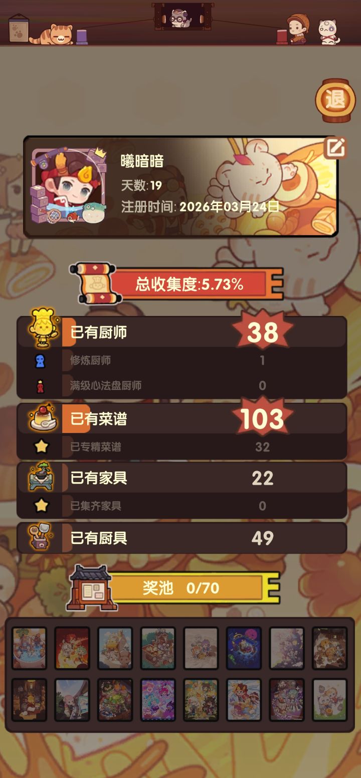 大部分人都在佛系养生了,这个排名也没什么含金量,今天心血来潮想上满菜看看可以提多少名次,之前都是上一两个菜过线就行,结果上满菜直接冲到这么靠前的位置还没上调料。这不禁让我思考,好像大部分玩家都在佛系,但很多中老玩家是不是没有目标的佛系。像我角色全修炼,金符文不缺,实验室菜全有,探索的食材遗玉都不缺,后厨合成菜都有,风云宴无压力拿满奖励,心法盘有些角色升了但许多奖励都是无压力过,也没什么必要升,除