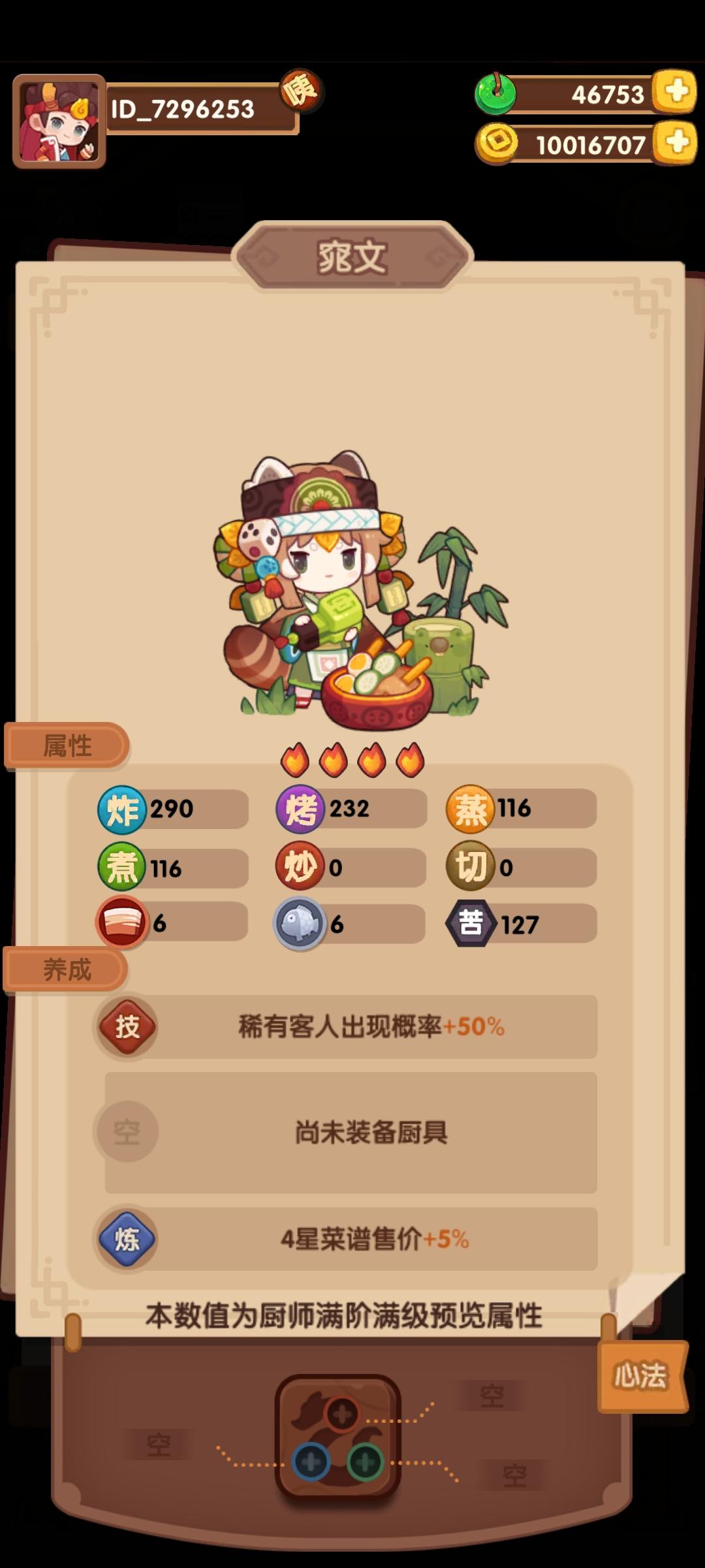2025.12.18游戏天数167,主线551厨师136,4礼包厨(2刺客1贵客),6r×3(黑风、孑子推、三太子),周常大奖×2(雷角、谛天)在论坛里搜了一下,最快的300厨达成时间是300天,但是这位是巨氪所以不考虑;其次是450天,没抽过坑,氪了6礼包厨刚好凑够。以此类推,我个人的情况应该是在400-500天内凑齐(范围太大了吧喂)。参考300天佬的攻略,他在主线550-800用时4
