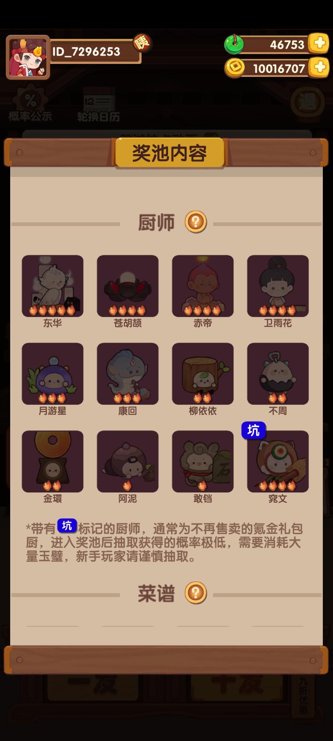 想问问多少玉璧能抽到一个带坑字的厨师啊我想攒到过年池,抽一个带坑字的