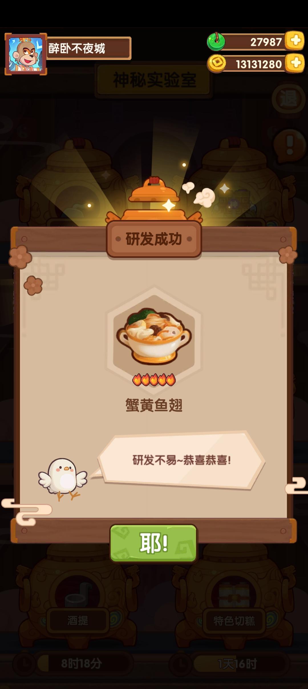 较低可能是不是保底要10次,1次六天,就要60天啦!!有哪几个比较实用的,修炼菜或者宴会菜,我先研发啊?#实验室 #修炼菜