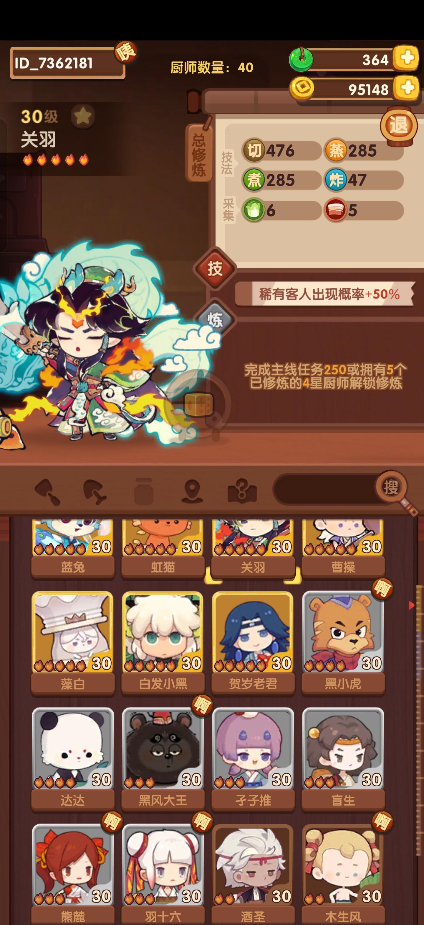 2025.12.18游戏天数167,主线551厨师136,4礼包厨(2刺客1贵客),6r×3(黑风、孑子推、三太子),周常大奖×2(雷角、谛天)在论坛里搜了一下,最快的300厨达成时间是300天,但是这位是巨氪所以不考虑;其次是450天,没抽过坑,氪了6礼包厨刚好凑够。以此类推,我个人的情况应该是在400-500天内凑齐(范围太大了吧喂)。参考300天佬的攻略,他在主线550-800用时4