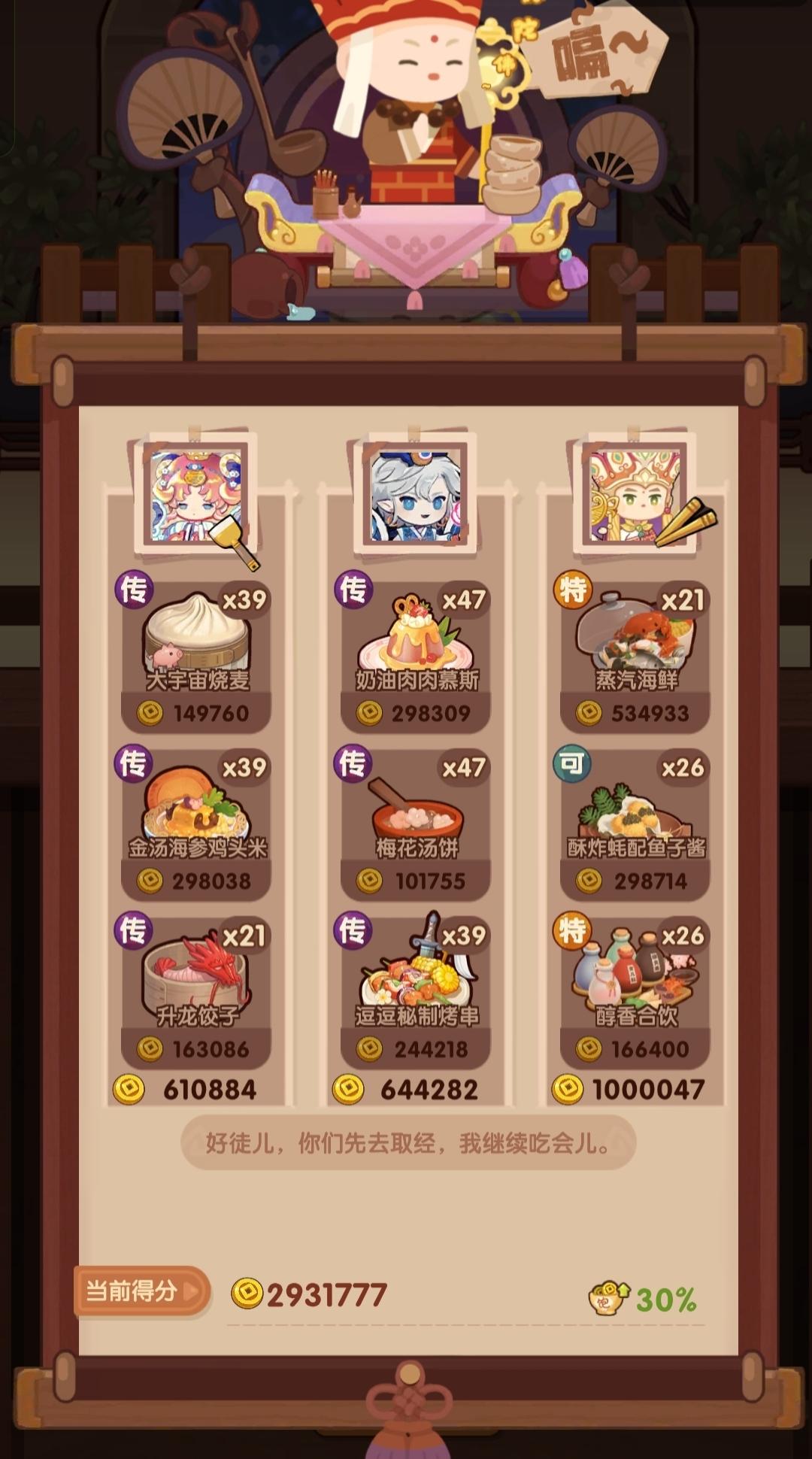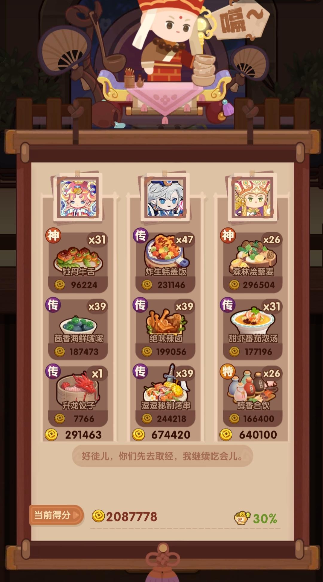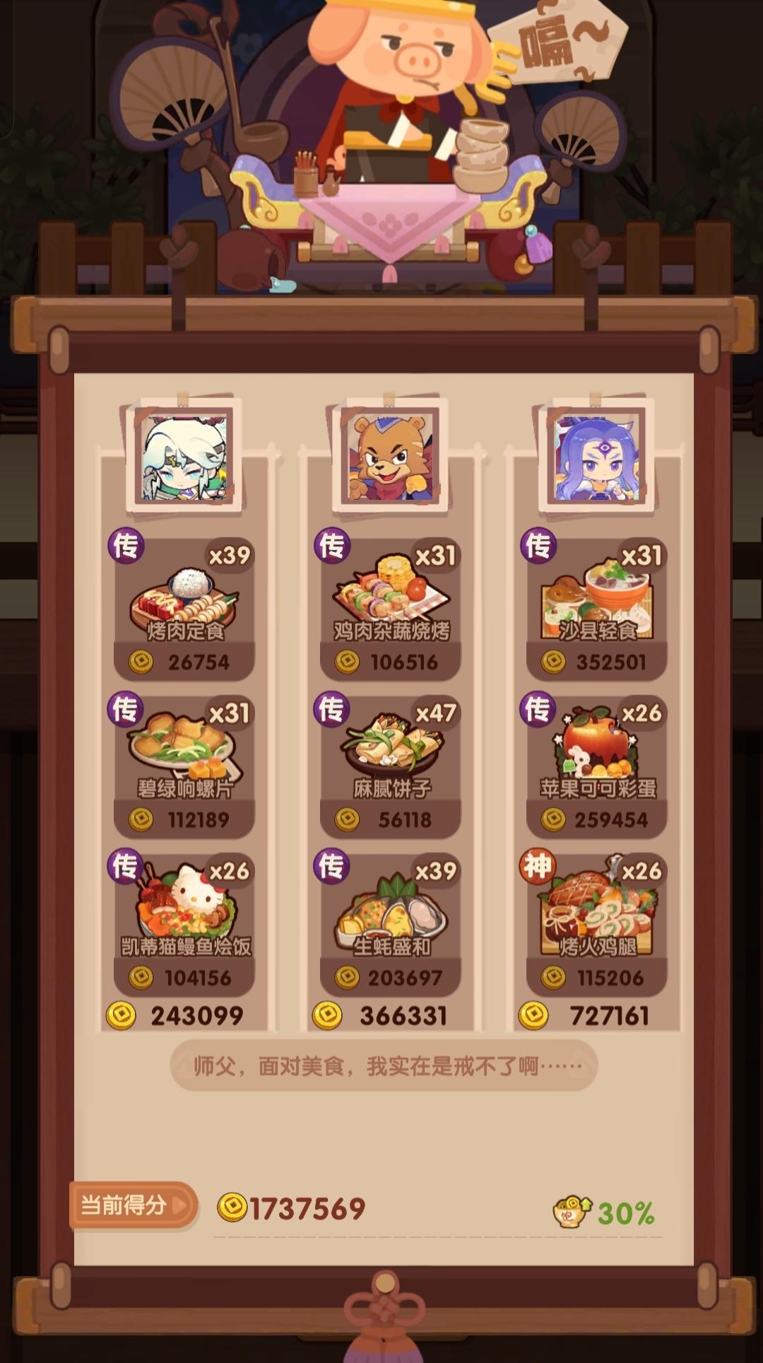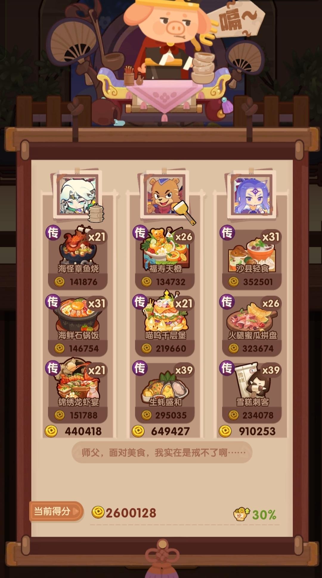 入坑大概半年都是零零散散的抽卡,晋韵风华开始抽新池(除坑抽完五个新池),只补了尚添和双十一(这两个也是差一点没有补完)。很想补金符文菜,没有利刃菜想补情人节池松鼠桂鱼。然后也没有贵客厨,很想抽几下子元气池林世恭(如果复刻应该也只能抽几抽刚把玉都花完了)。又刷到琳琅入坑很建议抽,非常想要那个全技法光环,因为现在还修不了几个厨师,五火都没修,四火修了几个,混沌子现在都还修炼不了,但是琳琅也差两个