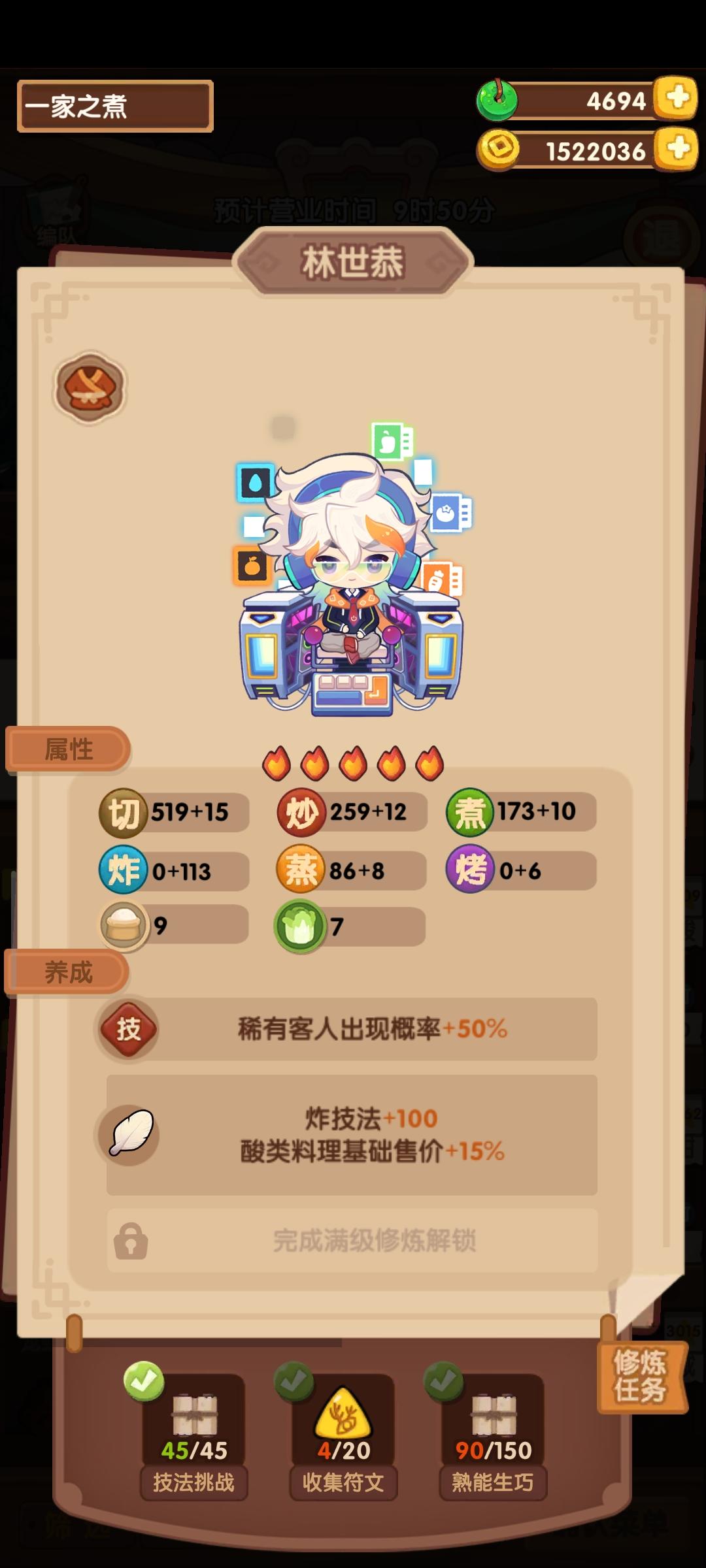 2025.12.18游戏天数167,主线551厨师136,4礼包厨(2刺客1贵客),6r×3(黑风、孑子推、三太子),周常大奖×2(雷角、谛天)在论坛里搜了一下,最快的300厨达成时间是300天,但是这位是巨氪所以不考虑;其次是450天,没抽过坑,氪了6礼包厨刚好凑够。以此类推,我个人的情况应该是在400-500天内凑齐(范围太大了吧喂)。参考300天佬的攻略,他在主线550-800用时4