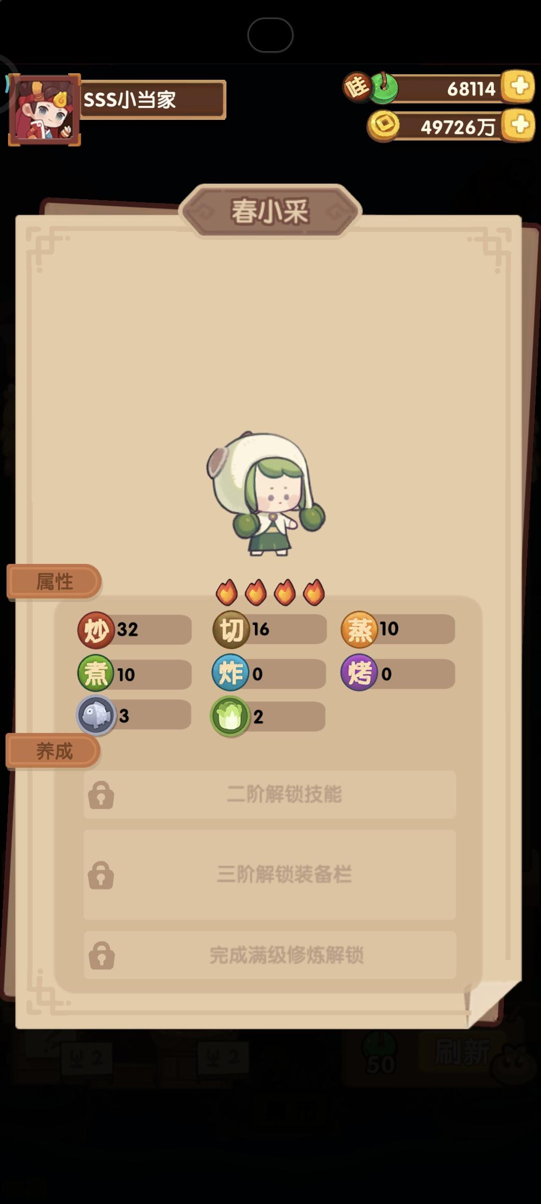 2025.12.18游戏天数167,主线551厨师136,4礼包厨(2刺客1贵客),6r×3(黑风、孑子推、三太子),周常大奖×2(雷角、谛天)在论坛里搜了一下,最快的300厨达成时间是300天,但是这位是巨氪所以不考虑;其次是450天,没抽过坑,氪了6礼包厨刚好凑够。以此类推,我个人的情况应该是在400-500天内凑齐(范围太大了吧喂)。参考300天佬的攻略,他在主线550-800用时4