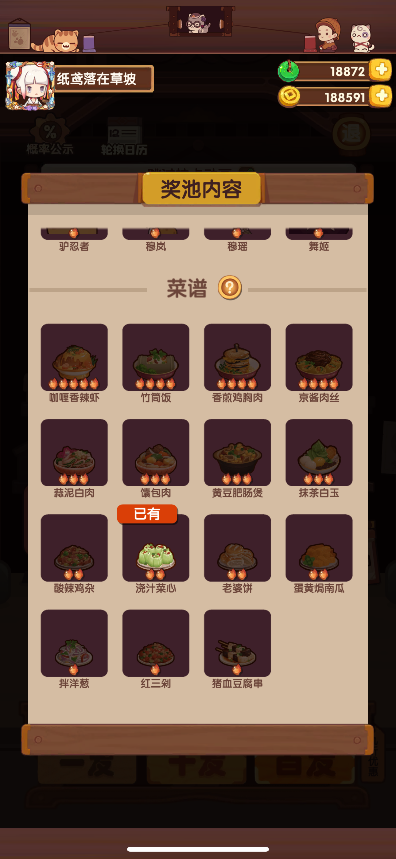 高级池6次百抽才出第一个菜谱,厨师为0争取每天3次百抽。疯狂刷拔丝雪梨 #爆炒江湖