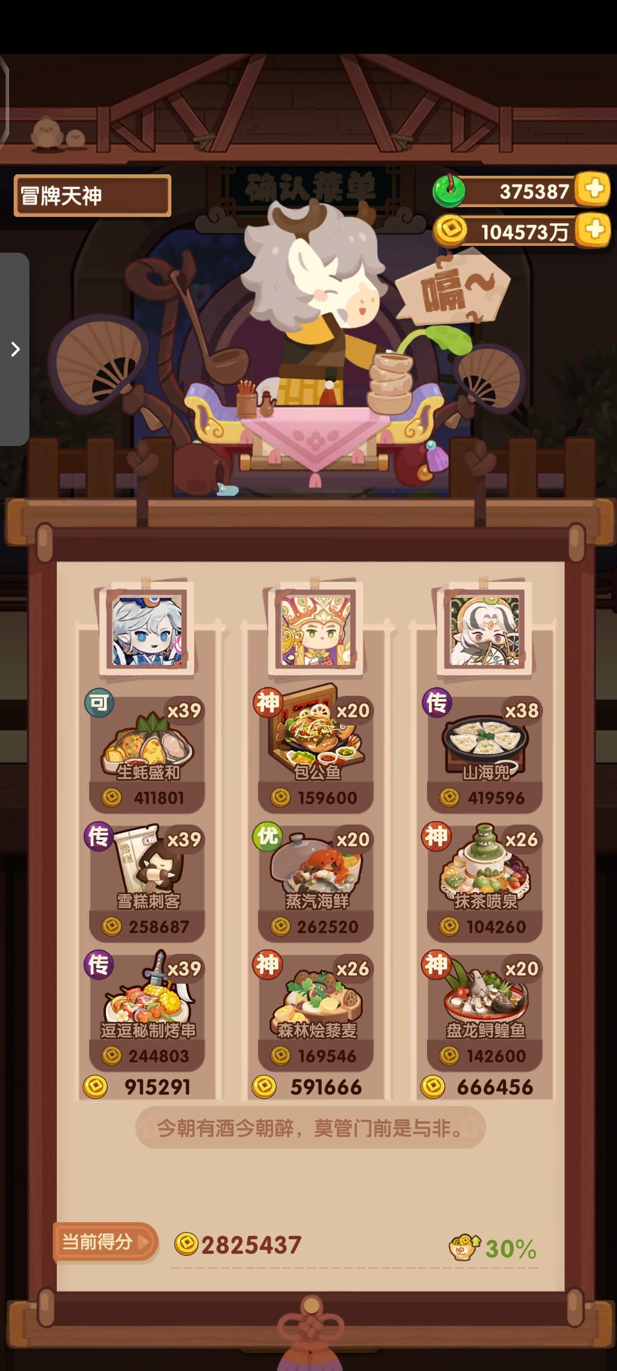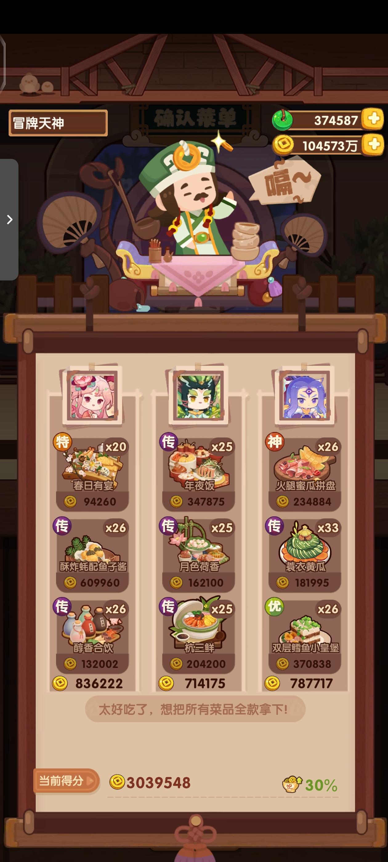 历时938天,终于完成主线,从之前的每个礼包必氪,到现在开始只买月卡,时间过得好快,总感觉这900多天一眨眼就过去了,庆祝下这一历时时刻总结下:1.完成国家队集结【虽然是老国家了】2.完成刺客队集结【小白终于登场】3.主线任务900完成【耗时好久,刺客队YYDS】4.采集/调料/矿区完成70%,后续优化为素材厨5.满心法盘厨师,目前进展50%【红色玉片太少了】6.菜谱专精目前剩余16