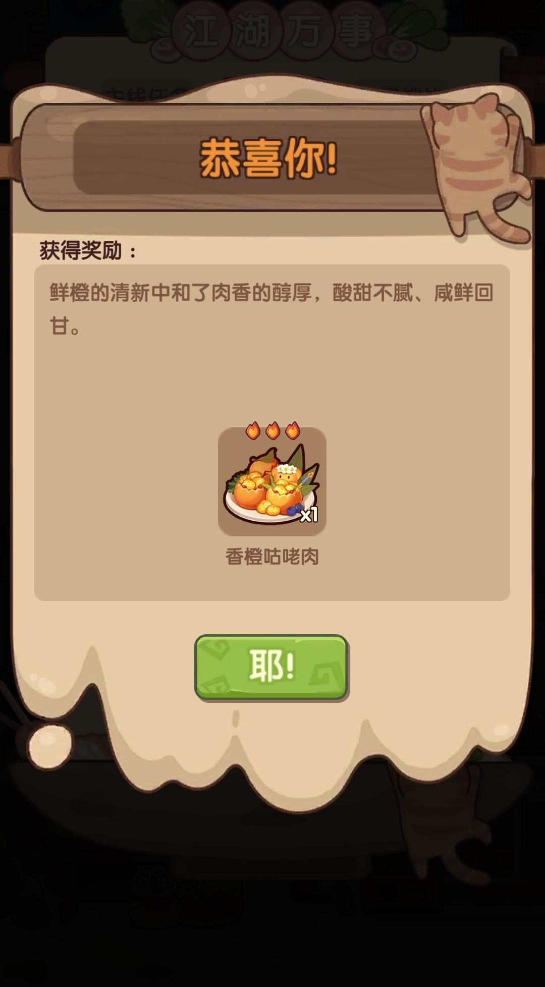 在厨子少菜谱少食材少三重压力下极限踢馆成功,限时任务期间还凭运气抽到三个四火菜兑换一个五火菜,在某些人看来新手期为了个限时瞎搞不值但对我来说玩得开心就很值👍🏻
