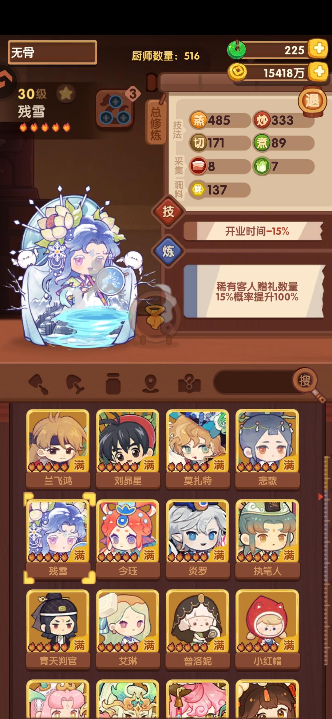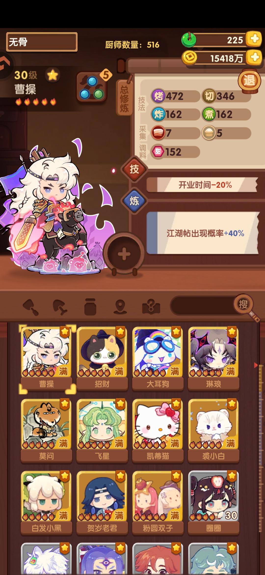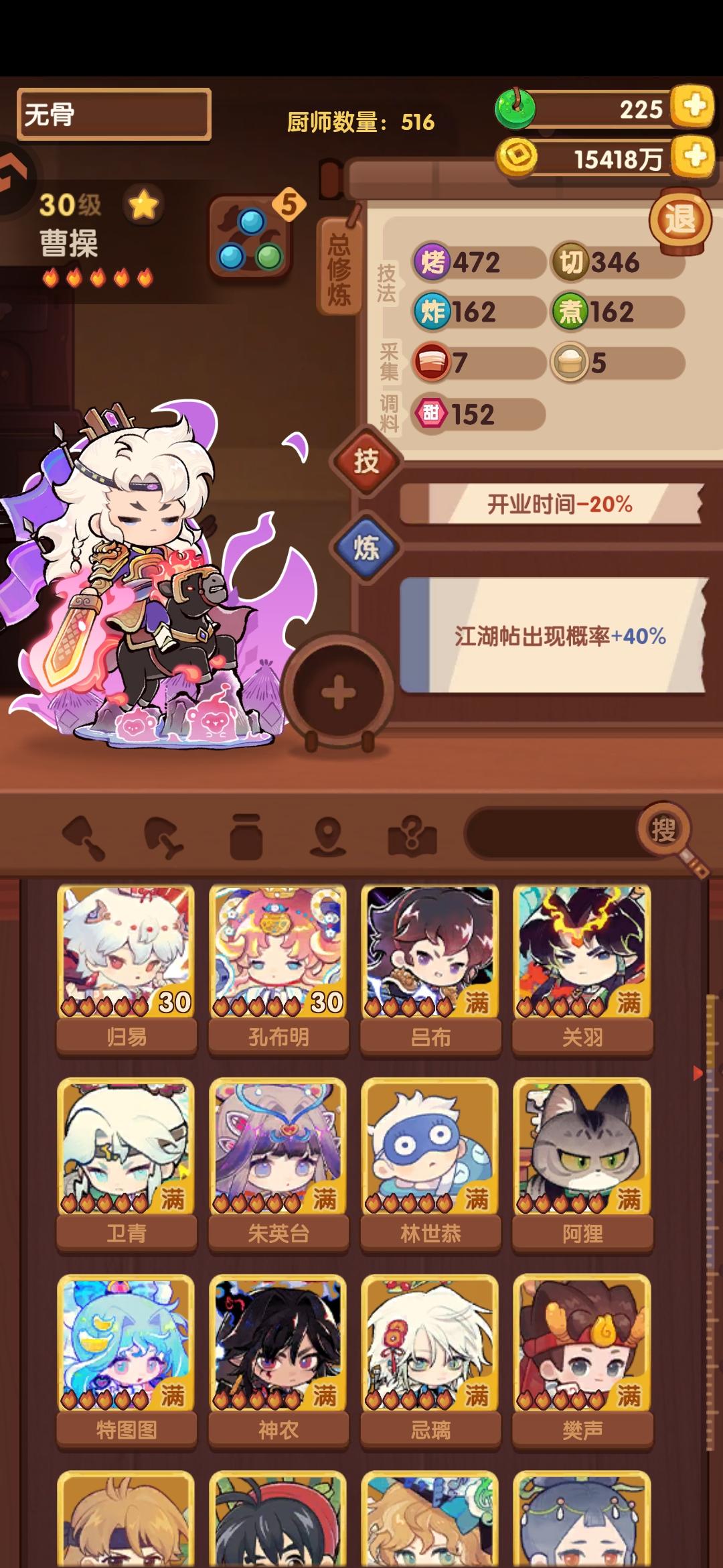 342.2w省满(省5线325.2w),缤果池菜厨表现亮眼!宴会思路记录,同时抛砖引玉能对相似进度小伙伴有启发最好!一个月前(20251212)有过一期【卷帘+御弟】,没想到这么快又重新轮到。当时只能州满,想省满代价很大,需要拉满所有上场厨子的心法盘并上满【席丰】。但此次作业加入缤果池的菜厨后,可以低成本轻松打满省满啦!宴会对技法的需求排序为【切】>【煮】>【烤】>【蒸】>【炒】>【炸】,对调