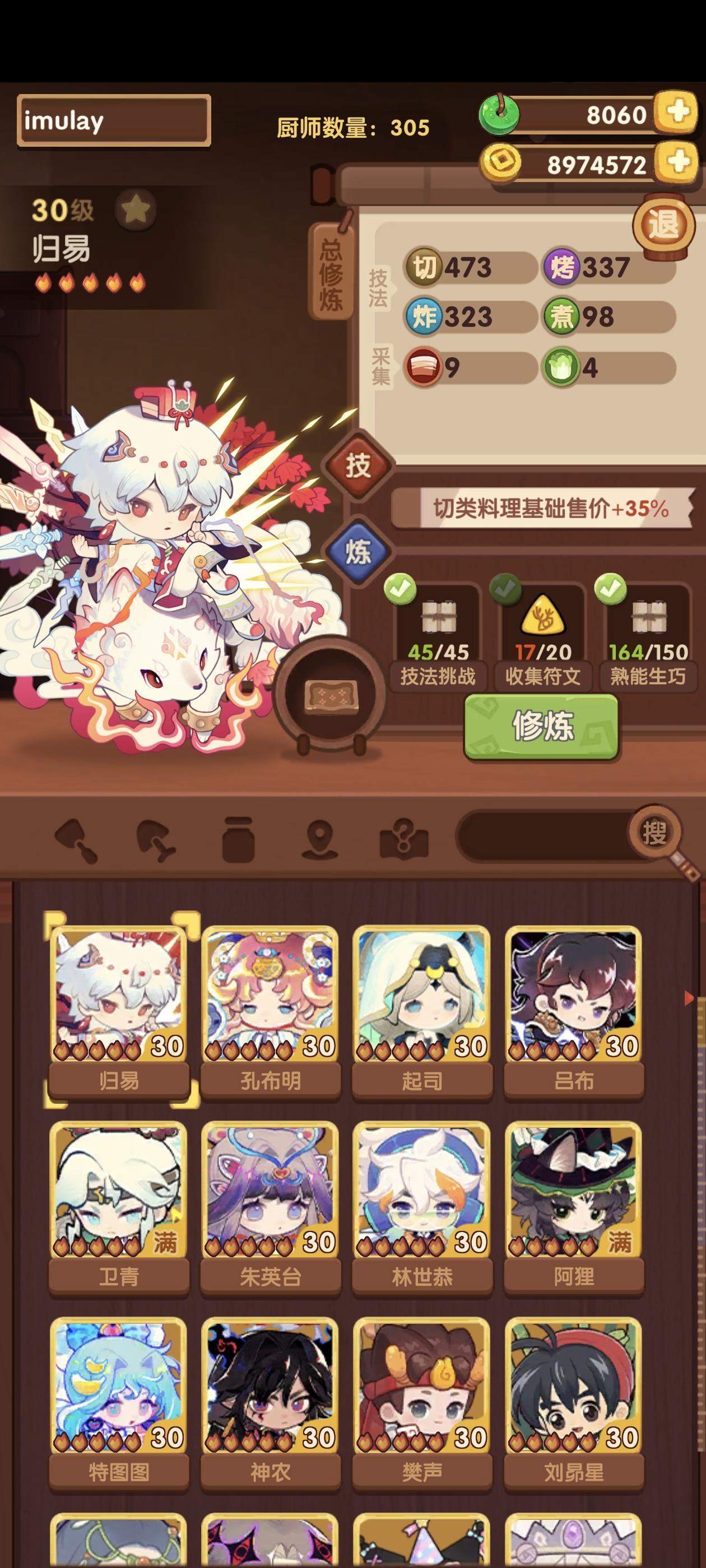 342.2w省满(省5线325.2w),缤果池菜厨表现亮眼!宴会思路记录,同时抛砖引玉能对相似进度小伙伴有启发最好!一个月前(20251212)有过一期【卷帘+御弟】,没想到这么快又重新轮到。当时只能州满,想省满代价很大,需要拉满所有上场厨子的心法盘并上满【席丰】。但此次作业加入缤果池的菜厨后,可以低成本轻松打满省满啦!宴会对技法的需求排序为【切】>【煮】>【烤】>【蒸】>【炒】>【炸】,对调