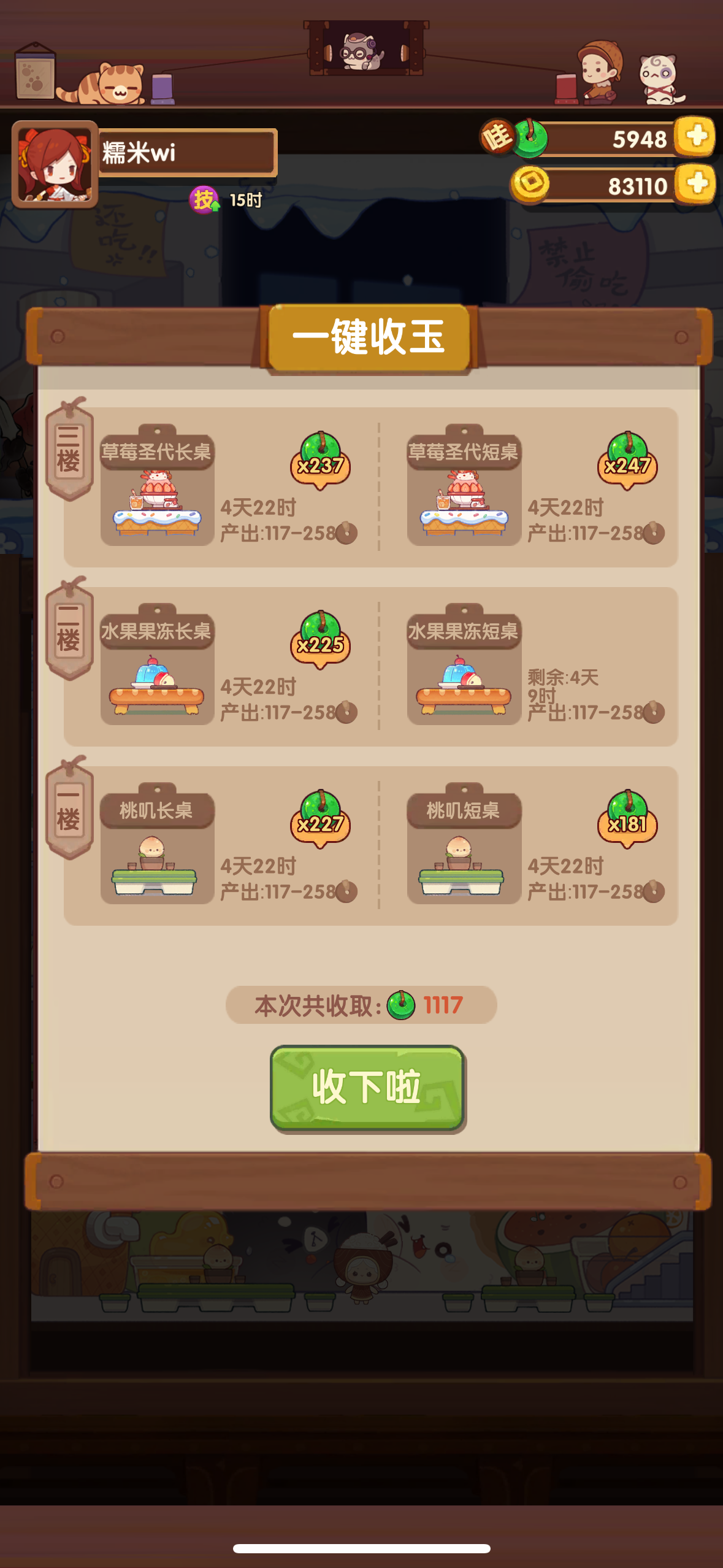 萌新第一次收桌子,感觉还挺多的,不亏我花了大价钱硬弄出来