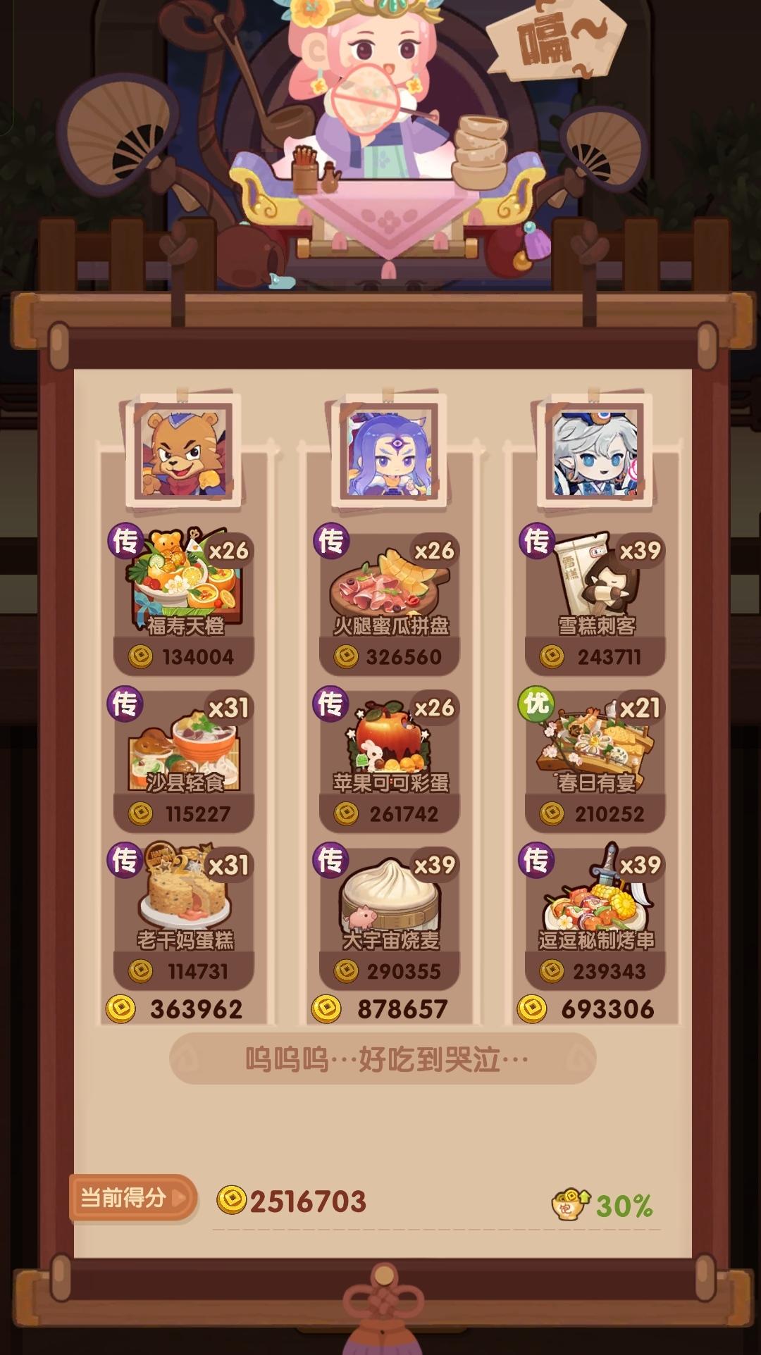 图鉴网被大佬接手后又恢复更新了,有方便的工具后也算了这周的风云宴,分享一下厨具搭配和思路。【胡喜媚+苏妲己】665w
