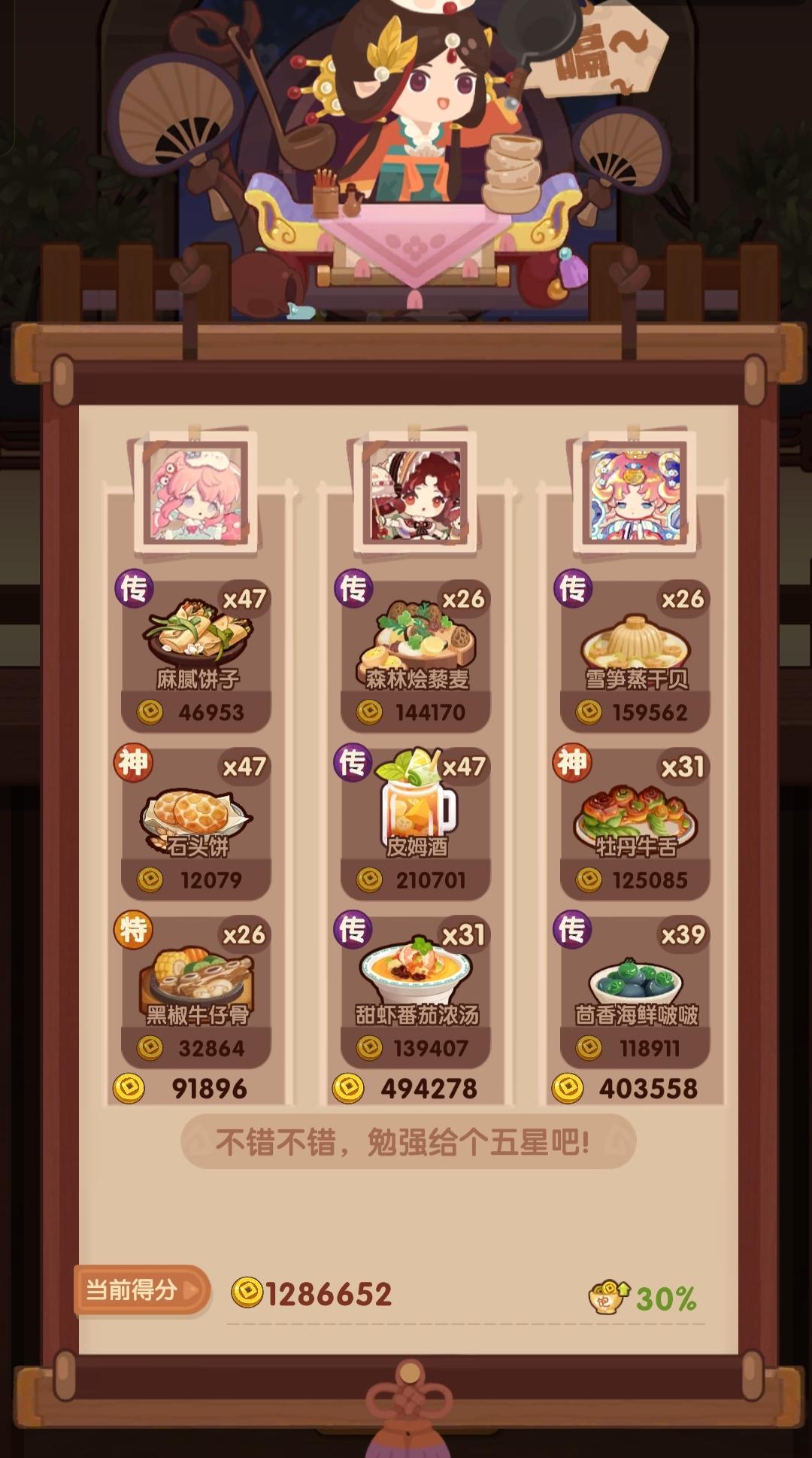 342.2w省满(省5线325.2w),缤果池菜厨表现亮眼!宴会思路记录,同时抛砖引玉能对相似进度小伙伴有启发最好!一个月前(20251212)有过一期【卷帘+御弟】,没想到这么快又重新轮到。当时只能州满,想省满代价很大,需要拉满所有上场厨子的心法盘并上满【席丰】。但此次作业加入缤果池的菜厨后,可以低成本轻松打满省满啦!宴会对技法的需求排序为【切】>【煮】>【烤】>【蒸】>【炒】>【炸】,对调