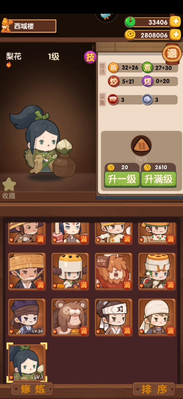 又到了精彩的厨师升级环节。等着四级没有材料,不生的原理继续。
