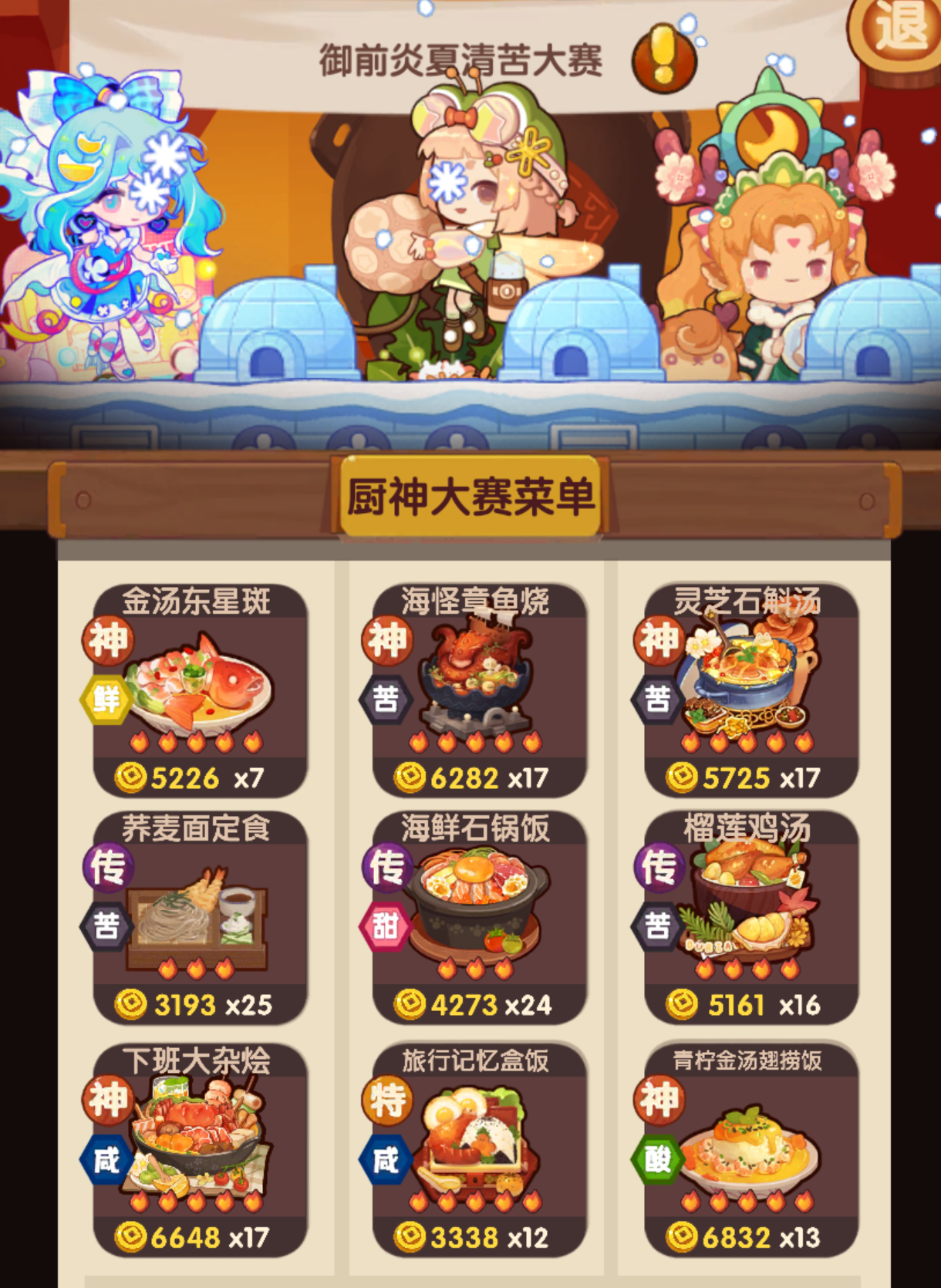 L佬辍更,众玩家失宴会算分之途,余不揣浅陋,愿承其任,续修此网,以飨同好。新网址foodgamere.github.io后续也会把轮椅的功能整合进图鉴网,轮椅猝~更新日志:2026.1.221.菜谱专精查询新增时间buff加成计算,勾选上场类技能的时间类厨师生效,已修炼的菜谱熟练度基修厨师也会生效(小王子、捕快小黑)2026.1.211.新增菜谱专精份数、时间查询,点击熟练份数输入当