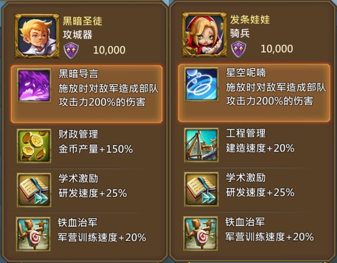 本攻略不适宜想打架的,但可供解惑参考。 一、发展篇 这游戏主要的旋律就是造兵采集地图资源或者掠夺他人资源,然后升级建筑,研发科技,所以资源往往是重中之重。 1.天赋 人物满级60级 天赋在选择上优先点满研发和建筑,这个必须先点满。 如果每天都有时间的可以点满右边的采集,然后再是左边的训练速度。 没法长时间在线的就点满负重采集,以及选择一个资源的单产属性加成。 温馨提示,前置天赋不需要点满,只要够解