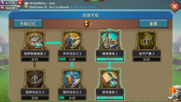 本攻略不适宜想打架的,但可供解惑参考。一、发展篇这游戏主要的旋律就是造兵采集地图资源或者掠夺他人资源,然后升级建筑,研发科技,所以资源往往是重中之重。1.天赋人物满级60级天赋在选择上优先点满研发和建筑,这个必须先点满。如果每天都有时间的可以点满右边的采集,然后再是左边的训练速度。没法长时间在线的就点满负重采集,以及选择一个资源的单产属性加成。温馨提示,前置天赋不需要点满,只要够解