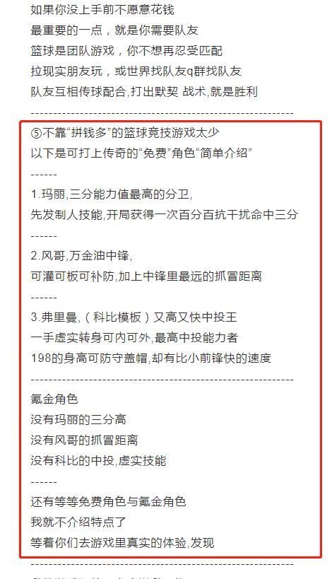 1.游戏训练难度颇高 ,盖帽是首要原因。一个新手任务设的这么难,历经3小时才通过。我觉得让制作人自己来打可能也要很久。2.盖帽问题太bug,偏短偏长都不行,必须要刚刚好,时机一点都不能差才能盖到帽。3.电脑太神,训练里不仅投篮捉摸不定还会假动作?惊了,看ID就知道是嘲讽玩家通不过。用了那么长时间打通的只是个训练,再也没有精力等下次内测甚至公测再去打通一次,已经掉了玩家的胃口。还好训练奖励算是对得起付出,不然早放弃了。4.电脑挂机?!【此处省略一万字】5.篮球卡篮筐?!这点做的太还原,本人打篮球也经常出现这种情况,游戏中进行了还原......于是只能默默退出已经快完成任务的游戏。6.游戏至少能加速吧?加速都没很是蛋疼。走路老太婆没毛病。更主要的是有了突破没加速怎么可能能防住,每次被脚踝终结后就可以看戏了。7.开黑还一定得3黑?不是很懂 大概做不出两黑匹配路人系统?8.这测试还有玩家挂机真的无言以对9.投篮条不是很懂,投篮在黄色区次次进,在绿色区次次丢,难道我色盲了吗,还是对颜色进率概念没有?10.角色位置有问题。大妈灵巧扣篮无视盖帽?要黑人有何用?PGSG没的说,三分个个库里汤神,一场5个三分里四个幻影的,也就是100%进的那种。SF最铁。11.延迟高优化差是导致大部分BUG的根源。总之还有一大堆问题等着解决,干巴爹