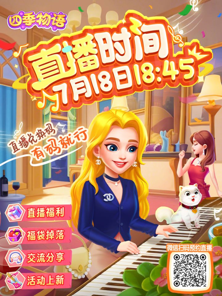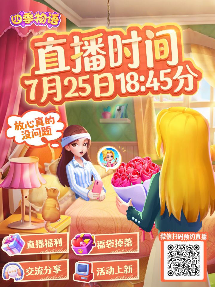 《四季物语》直播间周五开播啦~直播时间:7月25日 18:45神秘礼包码、抽奖福利、剧透全都有~👀快来围观我们主播在线爆料+送福利吧!