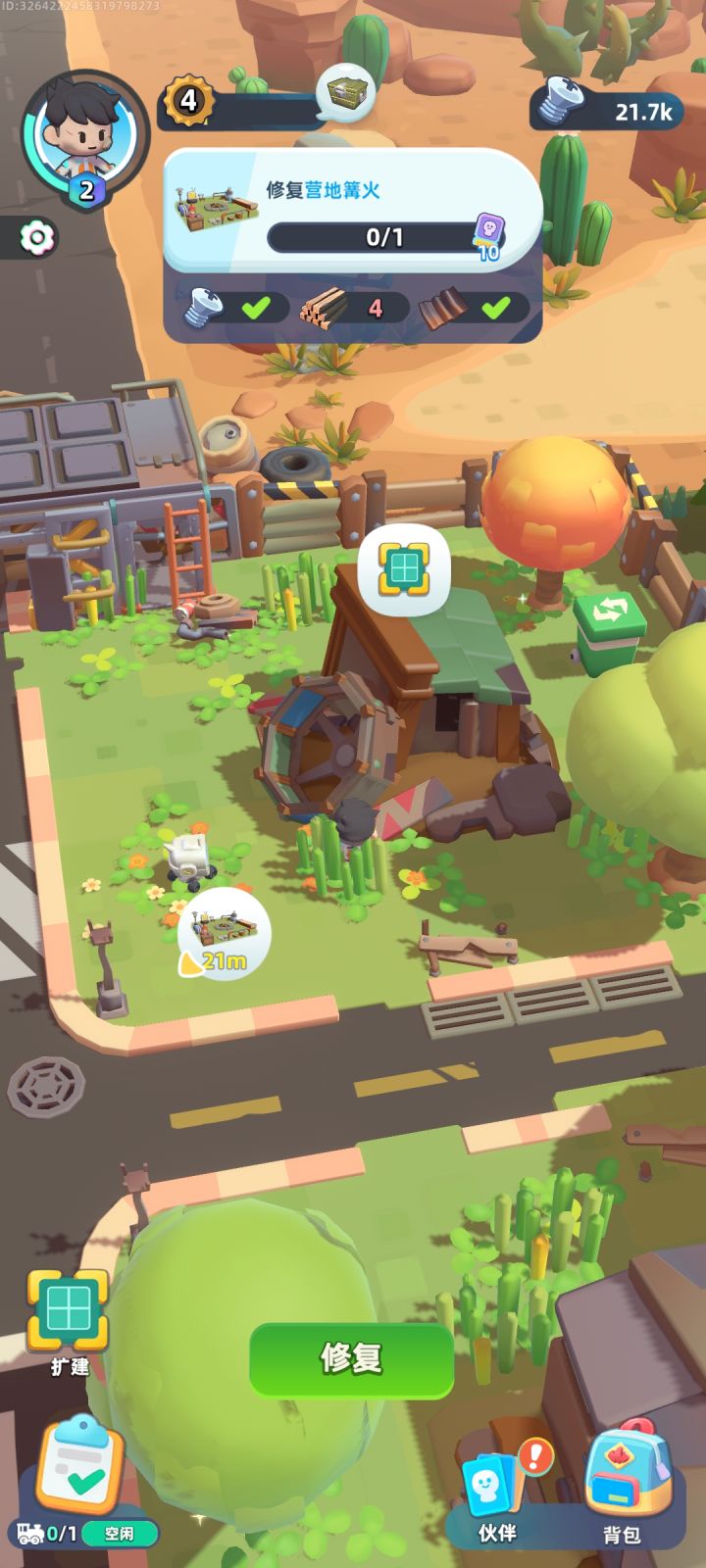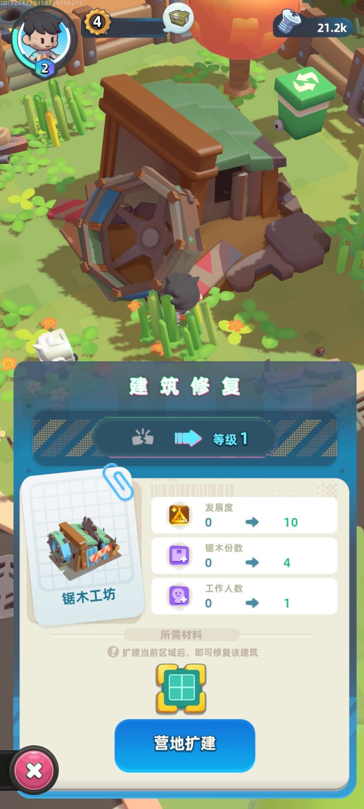 家人们救命!我现在的任务是修复篝火,缺木料;木料要从锯木工厂产生,修复锯木工厂需要营地扩建;营地扩建需要木料,??我应该要干什么才行😭😭😭😭