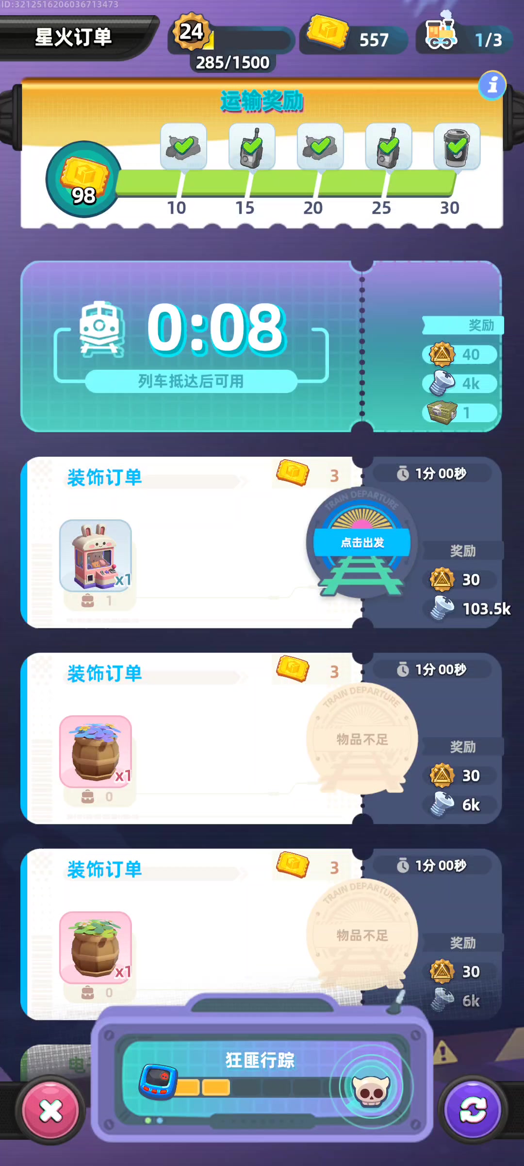 咕咕,虽迟但到的“兑换码”功能终于要来了,我们已经完成了游戏更新,但这次因为加入了新的功能,所以还得大家手动更新游戏,抱歉抱歉。老规矩,本次更新的内容如下:【功能】新增“兑换码”功能,首个更新好礼兑换码:Spark666。后续会在论坛和Q群随机掉落,先到先得哟。新增“订单列车数量”,从营地到达5级后,可同时运输的订单数量+1。新增“CG