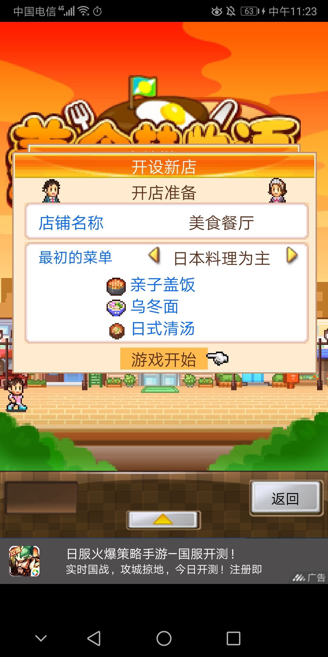 琢磨了好几天,说一说自己对于这个游戏的心得,希望会有所帮助。 很多新人在玩这个游戏的时候,总是很容易破产,要么重新开局,要么弃游。我建议在开局时,选择轻食店。进入游戏之后将菜单中的料理只留下炸鸡,等有主妇类的客人来吃饭,会在结账时给你一个新料理,“烤鸡肉串”(有的时候脸黑开局不来主妇,可以重新开局),这个料理是开局所能获得的料理中,价格上限最高的。菜单里面你只需要留下你所拥有的最高价格的料理就可以