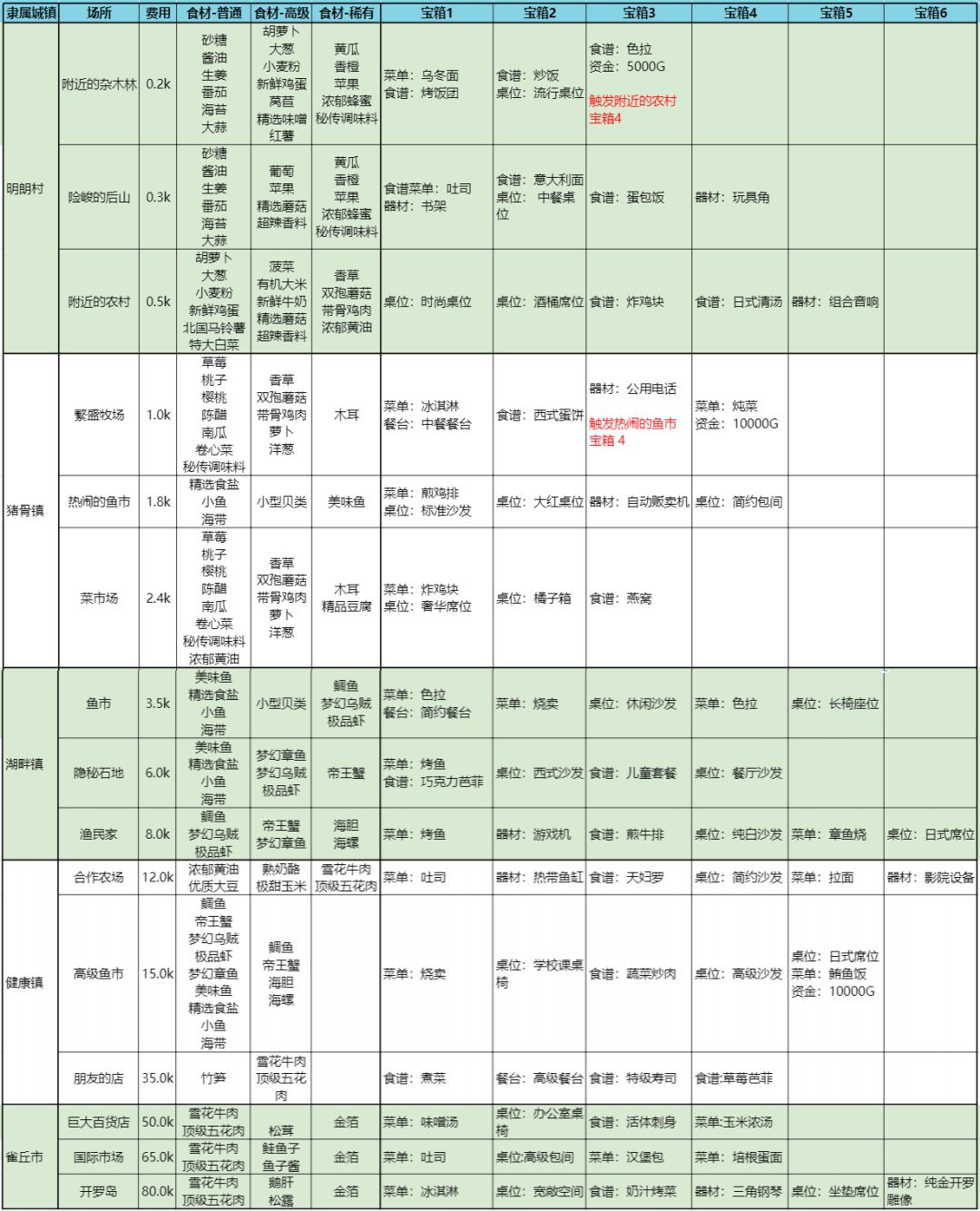 食材获取🥦宝箱奖励及桌椅获取途径
