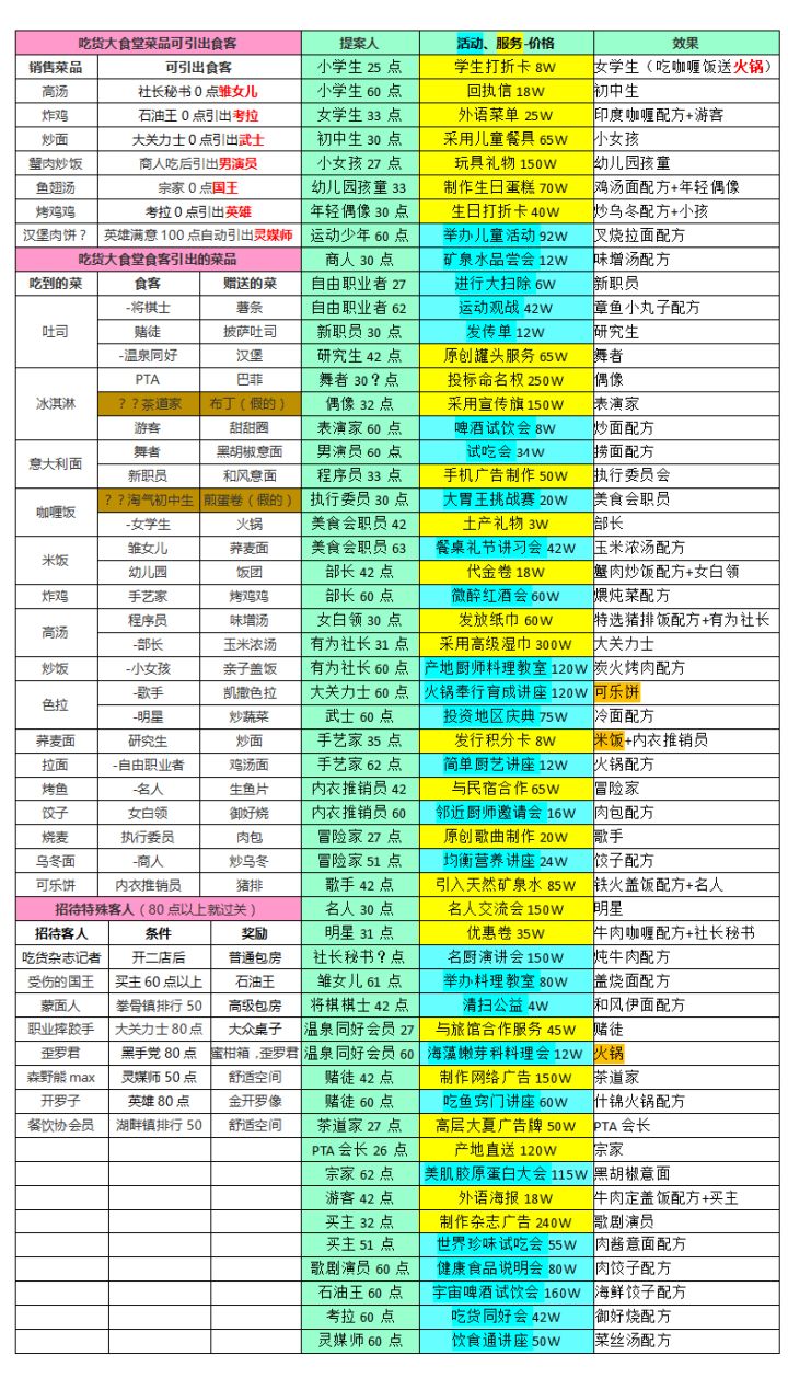 不废话,切入主题店员要求:徐吉以及另一个开局就能招到的员工能转食材大师,其他员工起码接待高手要满。食物方面,要求乌冬面/亲子盖饭八维满,火锅八维满,其余随意(日式炒乌冬可以考虑养满,更保险),炭火烤肉嘛。。。随你😆开局徐吉转五星主厨,陈梦没条件的转接待高手,有条件的可以转忍者/轮滑日料开局。开局菜单只放乌冬面/亲子盖饭,五千块全摆桌子徐吉和陈梦技能如图,为了尽快拿到主妇的积分卡都带了传
