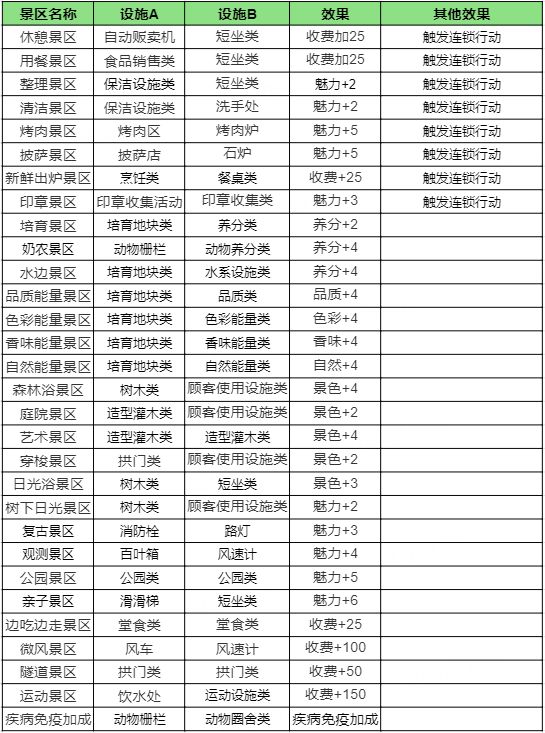 【景区图鉴】所需设施、效果一览