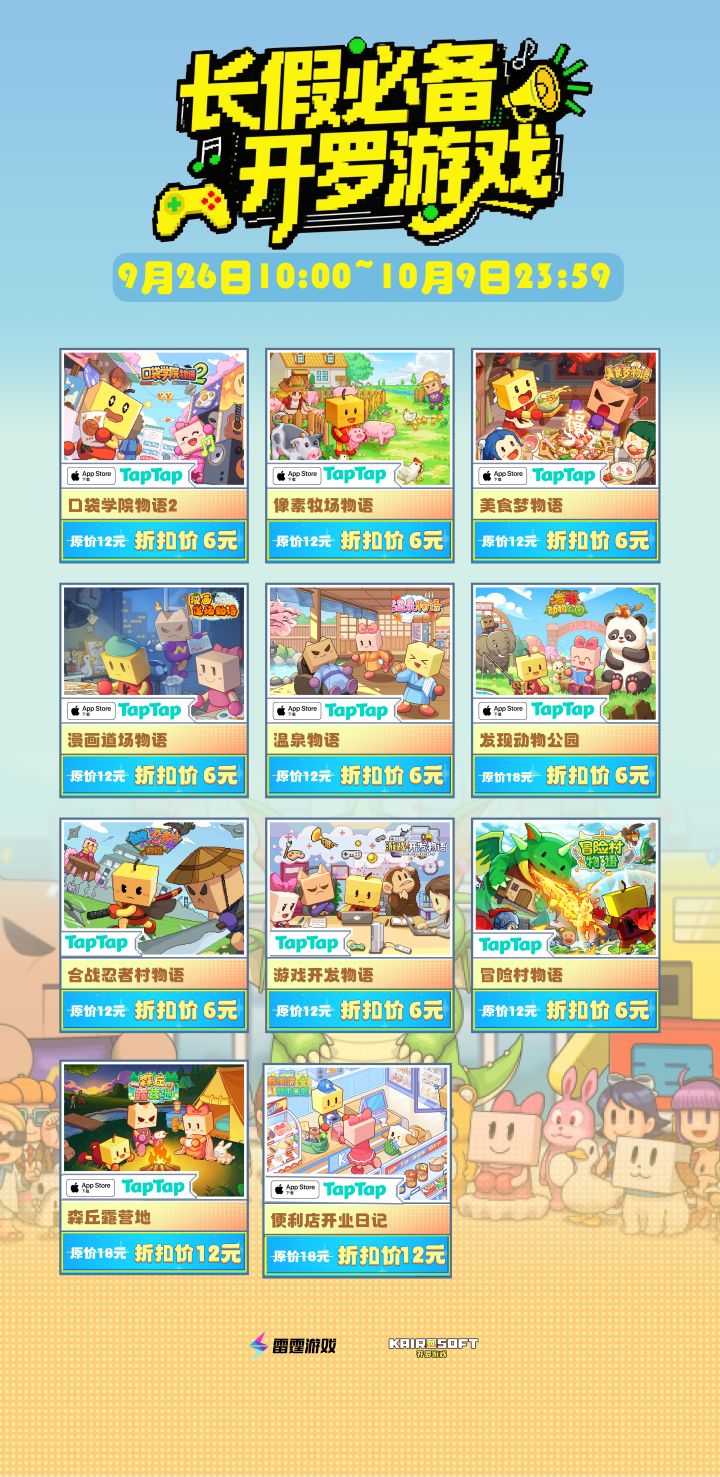 亲爱的开罗小伙伴,小队带来最新折扣资讯!长假即将来临,无论是宅家休息,还是出行旅途漫漫,简单轻松的开罗游戏都是陪伴您度过悠闲时光的绝佳选择~为庆贺中秋国庆双节,开罗游戏系列开启限时折扣!折扣包含11款游戏,单款价格低至6元/12元,切勿错过哟~折扣时间:9月26日10:00~10月9日23:59#发现好游戏 #开罗游戏 #模拟经营 #游戏日常