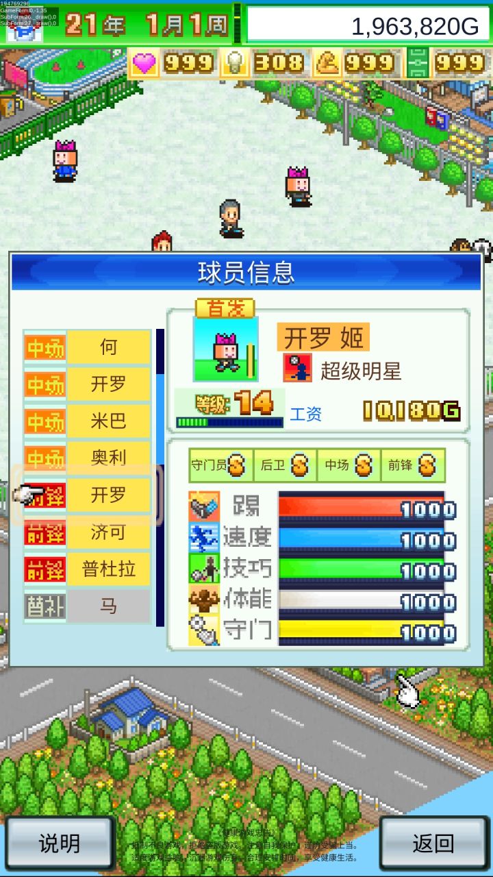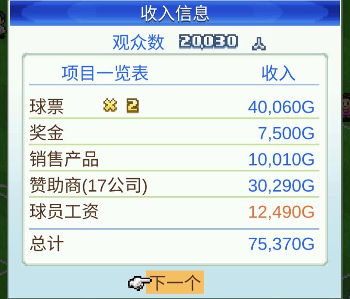 3.后期建温泉和健身馆,队伍换成全部带超级的球员,S奖杯赛要打,可以赢了可以招募超级明星,最难打的开罗子队伍前锋留爆发利用爆发只要打赢一次就可以入手最强超级明星开罗姬和开罗姬教练,打前最好保存。附图:这是第二次打的,有第一次基础发展会快一点,第一次玩流程差不多就如上所说,剩下自己慢慢玩吧。