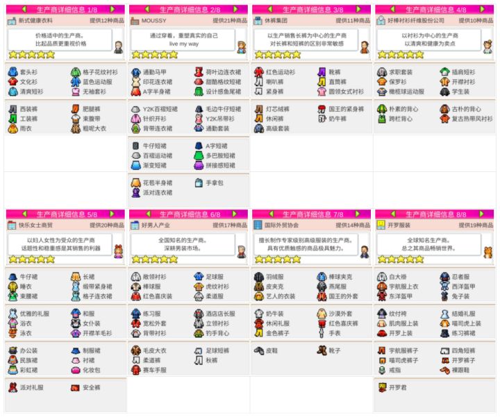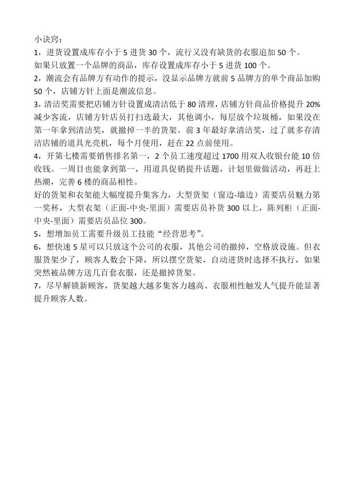 一些关于自己玩下来的小心得大部分攻略我也是看的这个帖子; 大家可以去康康。1.楼层选择建议就是,要么全货架要么全店铺我喜欢一家公司的放同一楼层(并不是完美布局)因为如果一半货架一半店铺,就会有一些衣服放不进去,不太凑的出多少效果个人安排的是地下西式裁缝,一楼中西,二楼休裤地下是16个,前期够用,后面解锁了其他的衣服就放不下了。一楼中西,放满衣服还可以放三个设施,服务台收银台+其