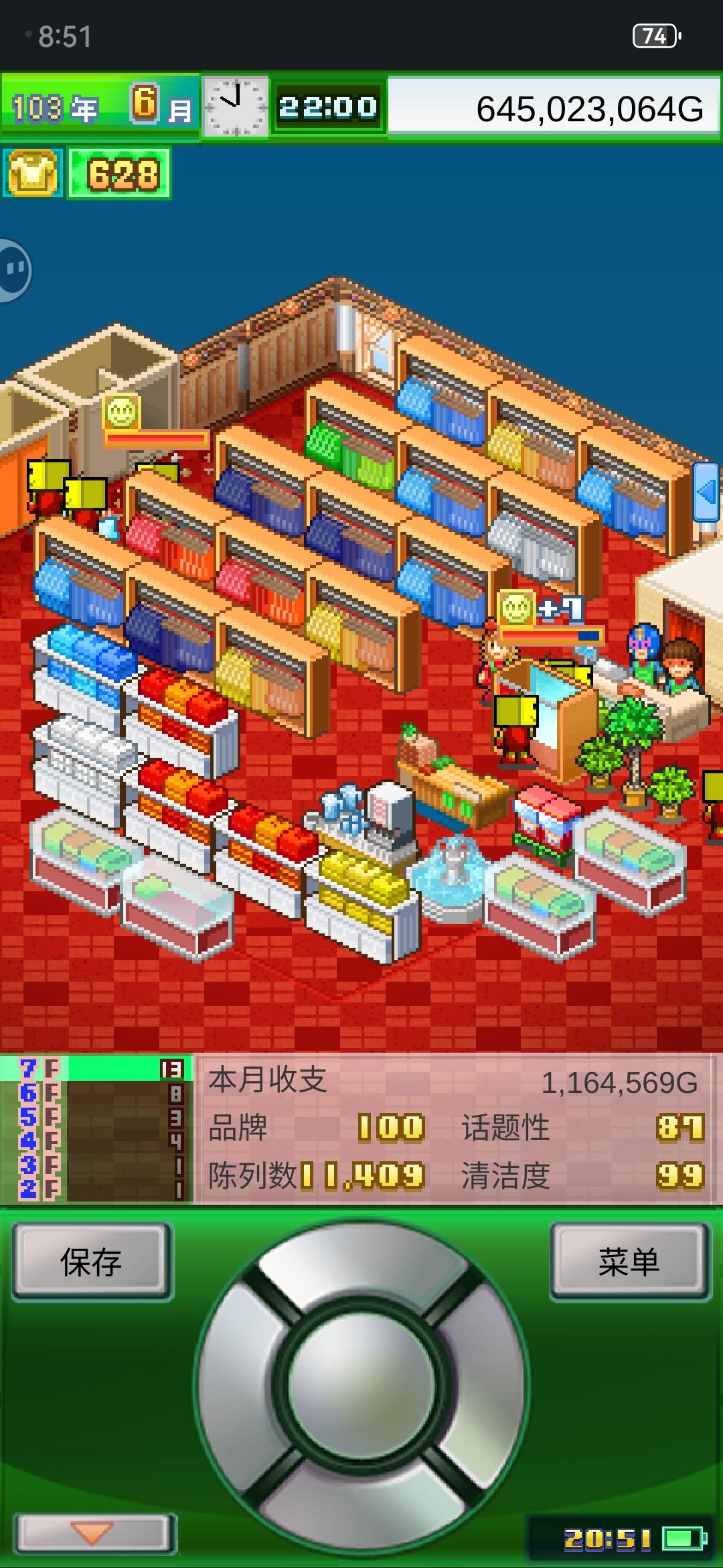 第一次玩这么久,这款主要看销量,销量高厂商就会解锁新服装,时间越久基本就会慢慢解锁的,还有注意的是如果一个厂商服装都解锁的话,建议撤掉,不然会影响其他厂商的销量。还有一些隐藏服装(主要看设施摆放)具体可以看攻略。后期会有一个双人收银台,两个店员等级高安排在一起结账的话金额会多很多,然后后期每个人的职业都会转成开罗君,个人最高一个月销量是三百多万。玩到现在还有点舍不得删,先放着吧,空了就拿出来