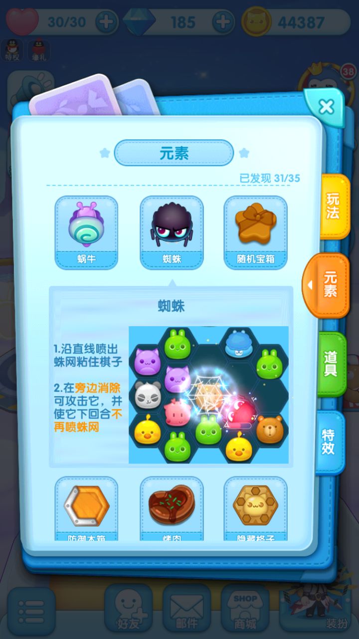 在《消除者联盟》中,蜘蛛元素、蜗牛元素这两大爬行动物给小伙伴们们带来了很多困扰。蜗牛元素的应对策略之前为小伙伴们介绍过了,蜘蛛元素与蜗牛元素有着一些相似之处,但是又有其独特的特点。下面我们就一起来学习下蜘蛛元素的应对秘诀。蜘蛛元素介绍蜘蛛元素属于障碍型元素,会持续不断的向外吐蛛丝形成蛛网,一步步蚕食可移动棋子的空间。这一设定与蜗牛痕迹、水滴有一定的相似之处。不同的是,蛛网被消除后,棋子还会恢复