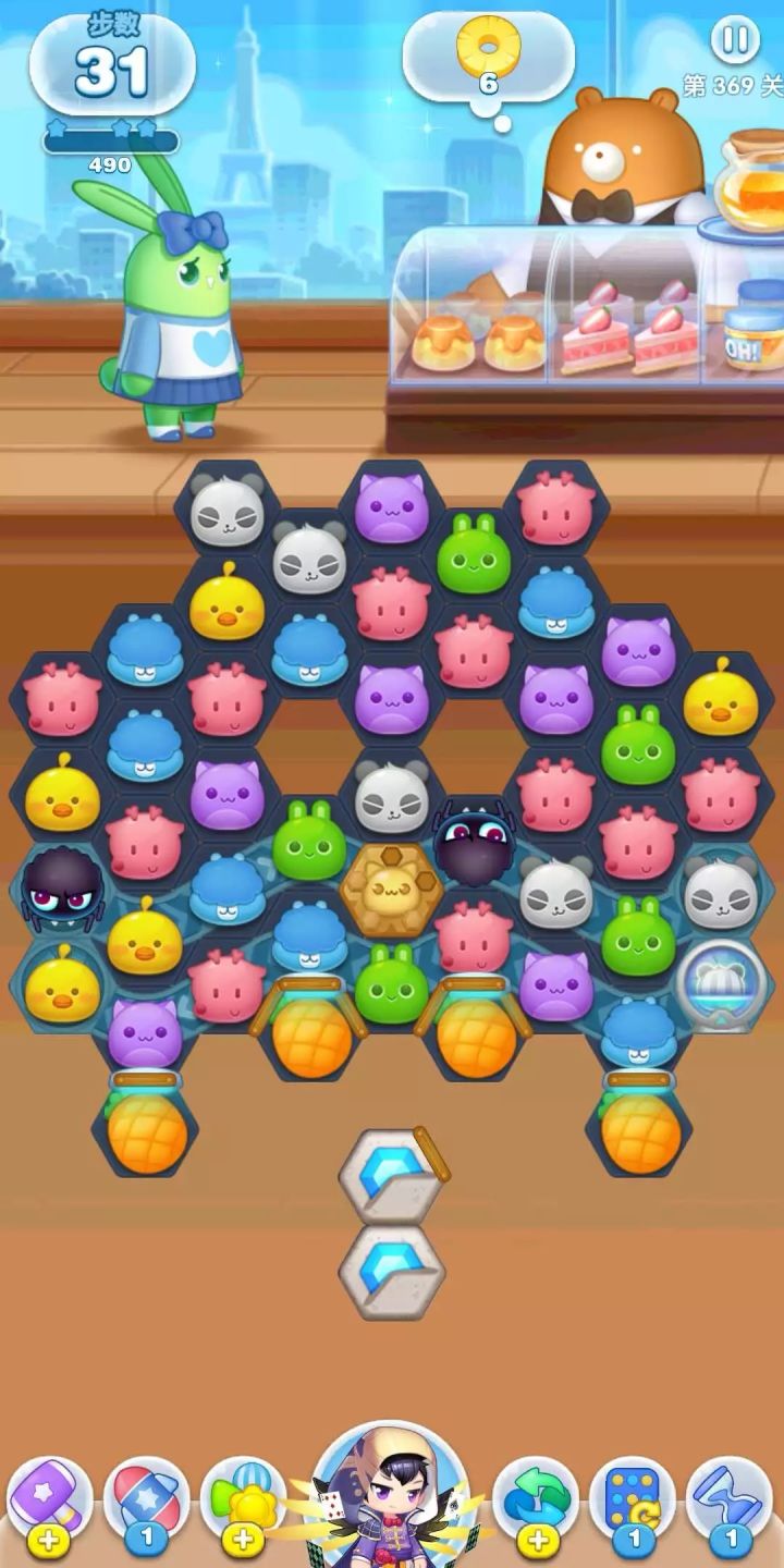 喵粉们上周的第369、397、403关难关求助本喵已经收集到了消除老司机们的通关妙招想知道怎么过?快跟本喵一起来看大神攻略吧369关关键点:隐藏格子这一关的菠萝被栅栏隔离在下方,我们需要先触发孵化器,利用传送带和直线特效棋子来消除下面宝石,破解出隐藏的格子。这样就能收集菠萝片顺利过关!尽量争取在触发孵化器的同时能够使蜘蛛眩晕,不然蜘蛛会把粘住棋子无法移动哦。小tips:越快破解隐藏