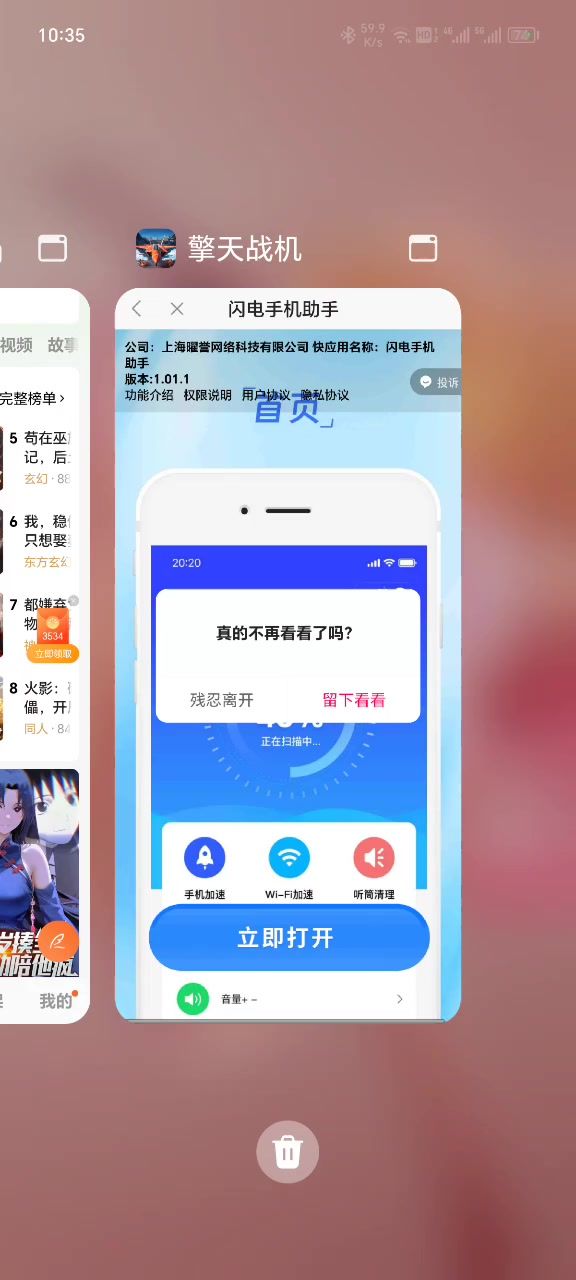 #新人避坑 #新人必看 #擎天战机 这游戏的广告比病毒都狠,点开广告后,马上自动跳转到另一个新的APP广告窗口,你切换回游戏后,又马上跳转回新的APP广告窗口,我切换了N次,根本就无法再切换回游戏了,只能彻底关闭游戏。 只要点开游戏,游戏就没法玩了😡😡😡