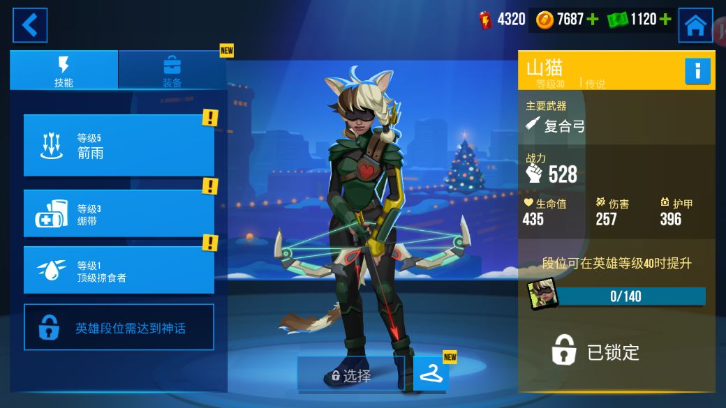 今天我们来介绍的一位英雄是雷霆小分队中的女战士-山猫,主要使用的武器是复合弓,擅长远程射击,她拥有以下技能: 1.箭雨 技能激活时,英雄瞄准后,从上方对敌人降下箭雨。 箭矢对150范围内波及的所有目标造成400伤害 英雄移动速度降低-50% 后续技能还可以继续升级,属性伤害也随时技能等级提升,目前最高技能等级是18级,属性加成也更加可观 2.绷带 技能激活时,恢复+70点英雄生命值,后续随着技能等